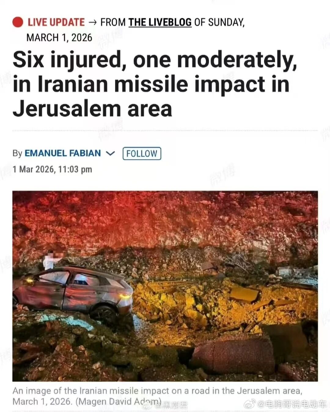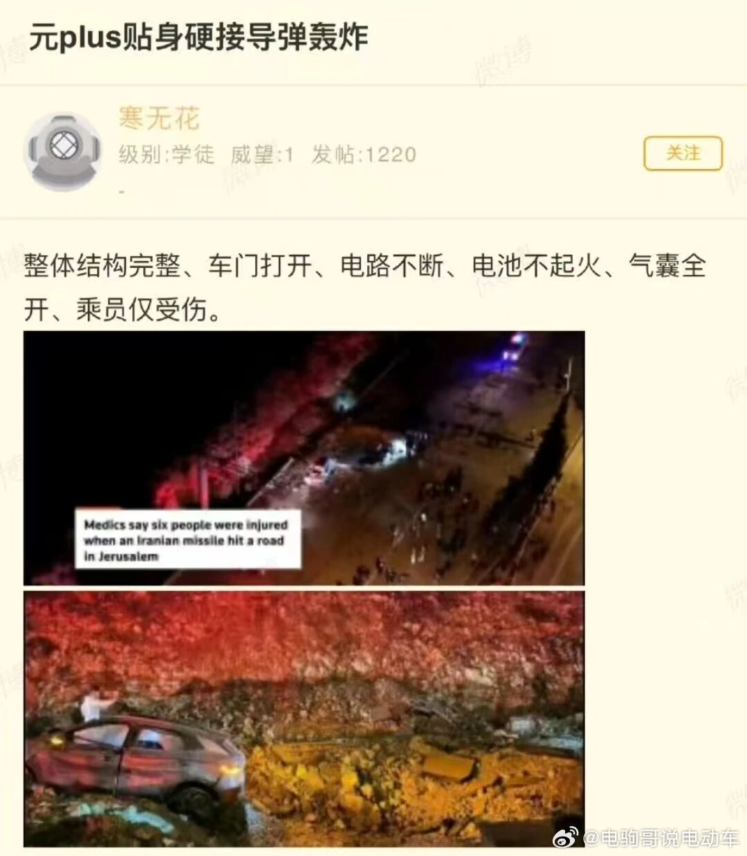 这就有点牛了!据《以色列时报》报道,一辆比亚迪元PLUS遭遇导弹袭击,现场弹坑巨大,但车辆车身结构依然完整,车门可正常开启、电路未断、气囊顺利弹出、电池未起火,现场仅有人受伤,无人员丧生。比亚迪伊朗发起第13轮攻击伊朗导弹击中美第五舰队总部瞬间