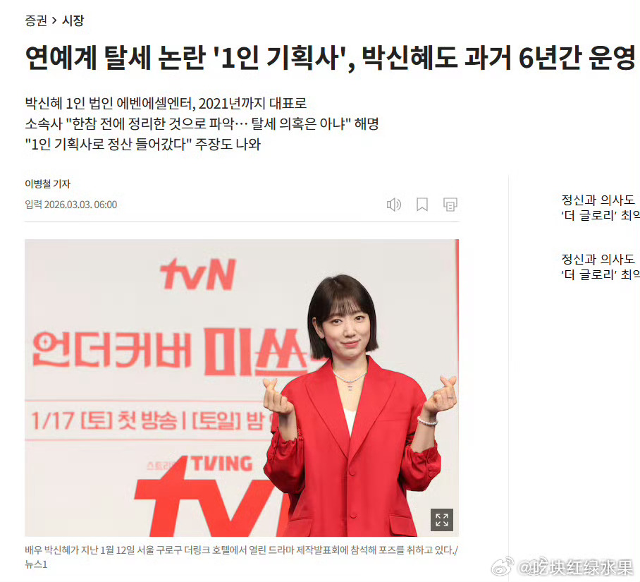 韩媒报道:朴信惠疑似涉嫌逃税 方式与之前车银优相似