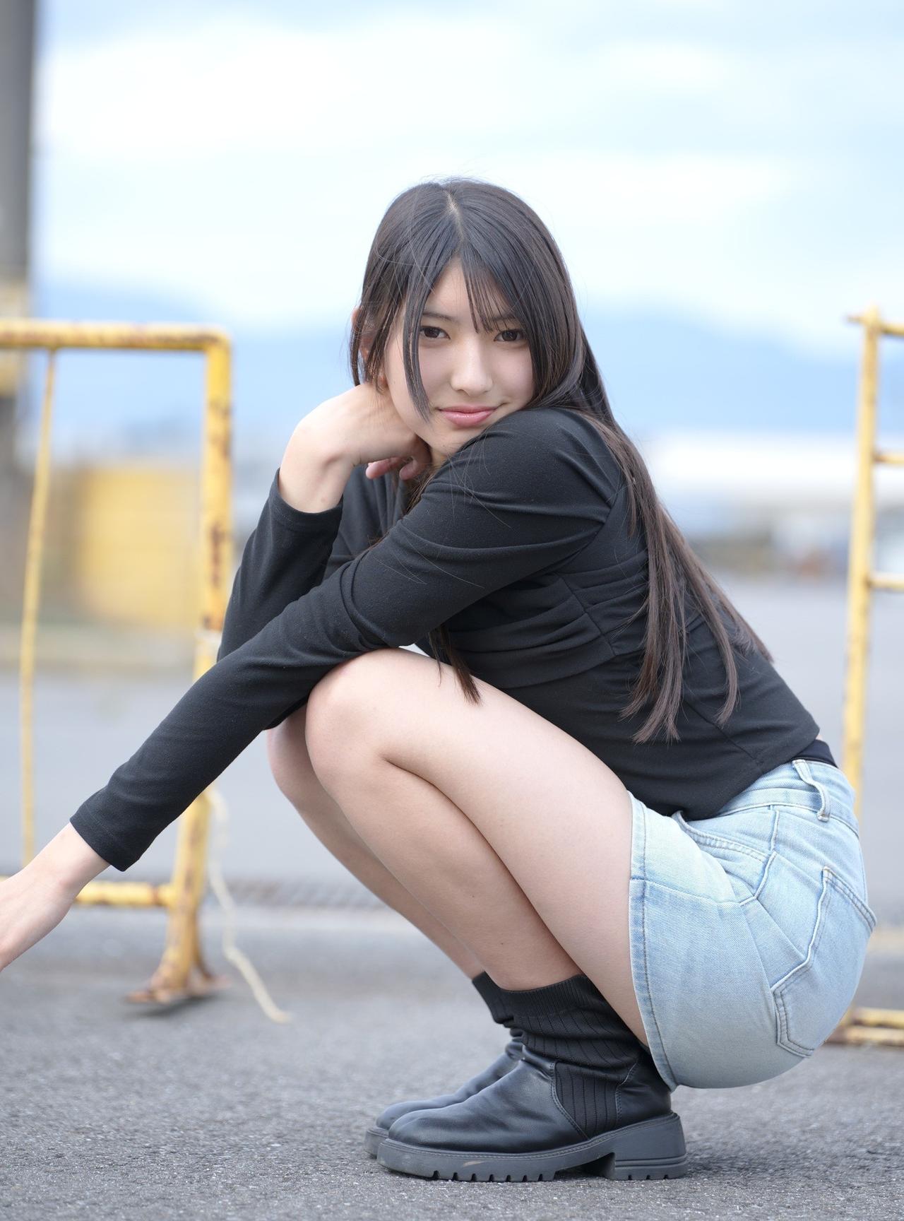 清新自然,甜美可人,黑衣牛仔,简约时尚。