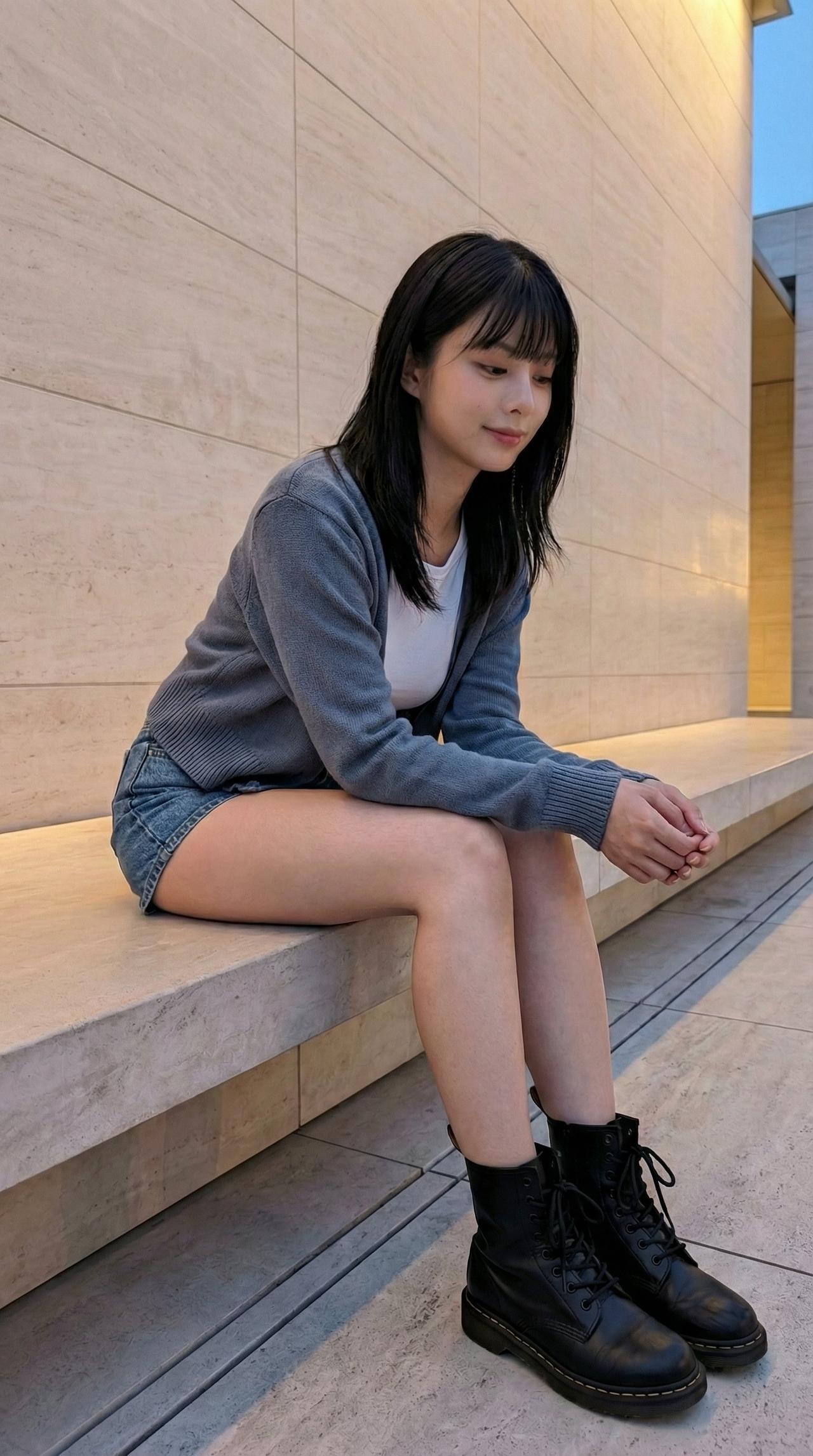 冬日暖阳下,少女轻抚围巾,甜美动人