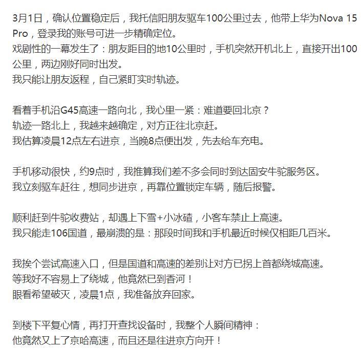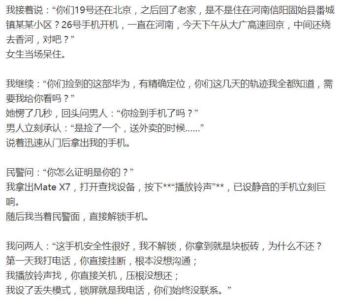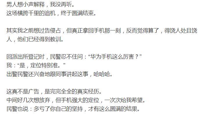 震撼!摄影师华为手机丢失11天后,成功找回 华为手机防丢失功能上大分了,这个摄影师也是大好人,费了那么多时间精力最后拿回被侵占的手机后,也没追究对方责任了,很是大度,华为的黑科技给这场圆满的久别重逢增添了温度!!