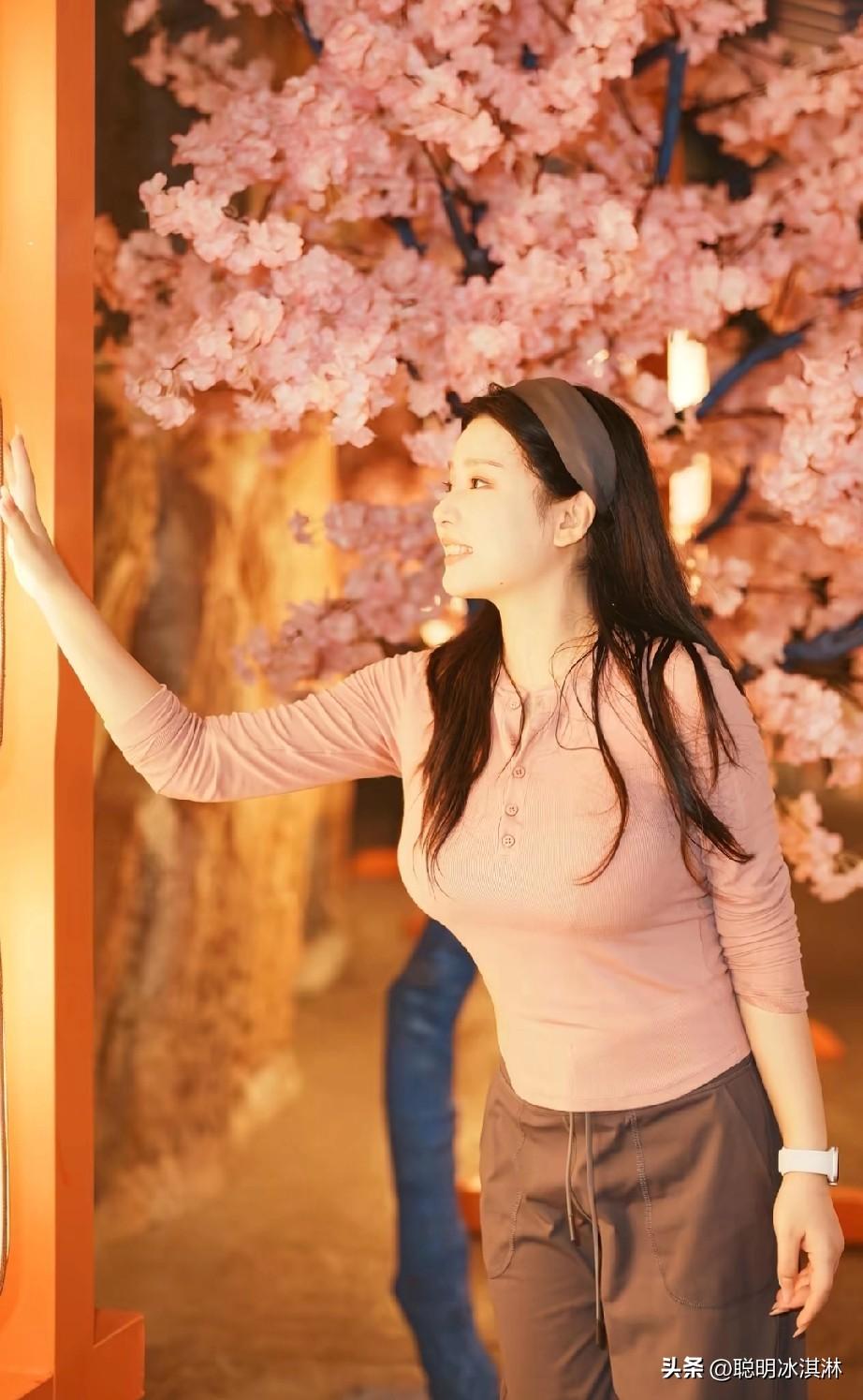 粉衣美人倚栏杆,笑语盈盈似画卷。