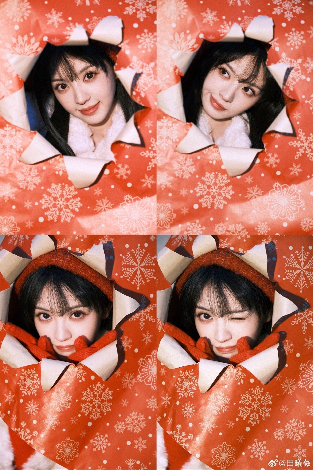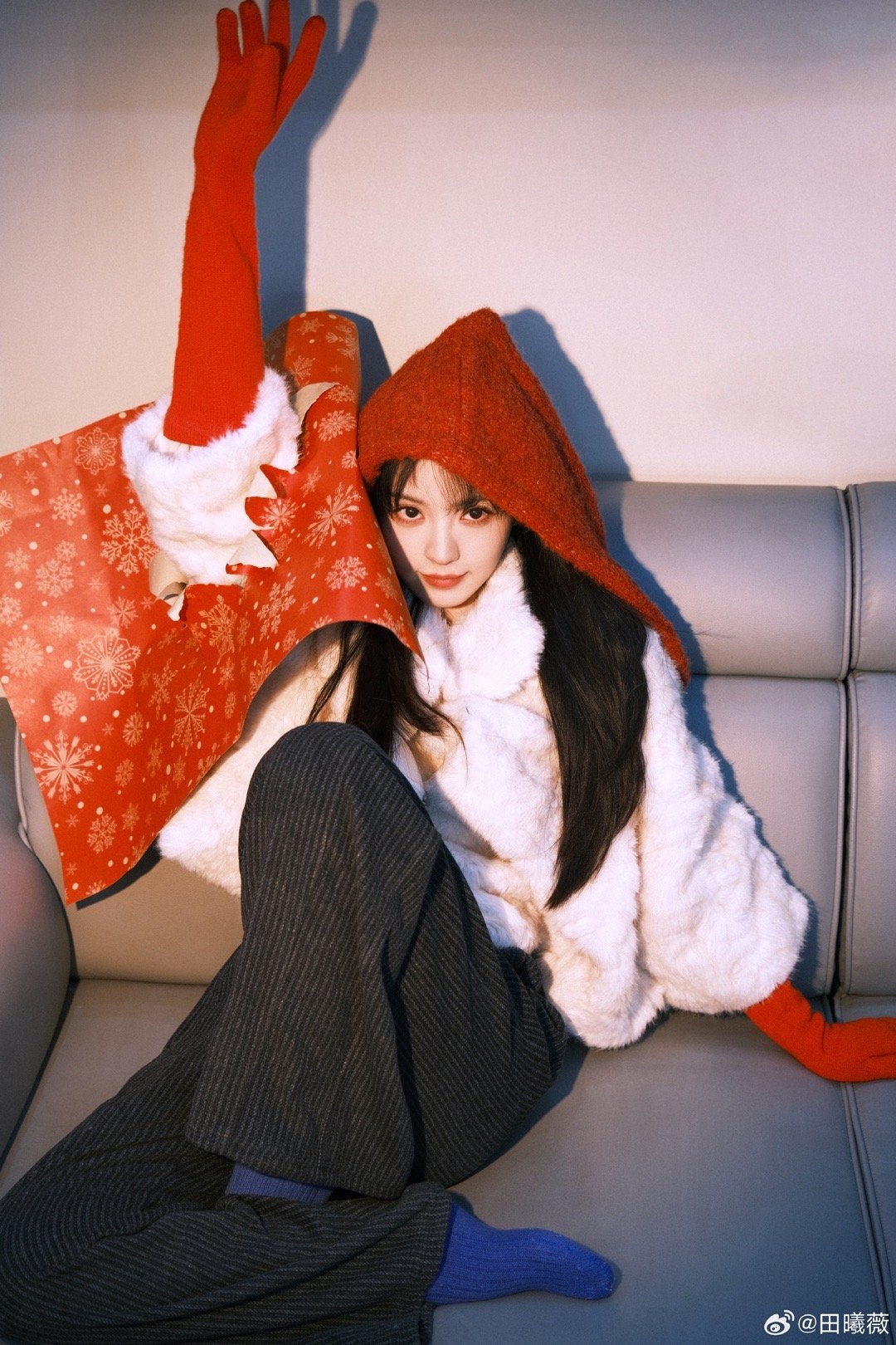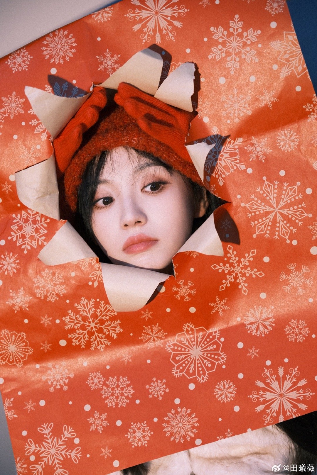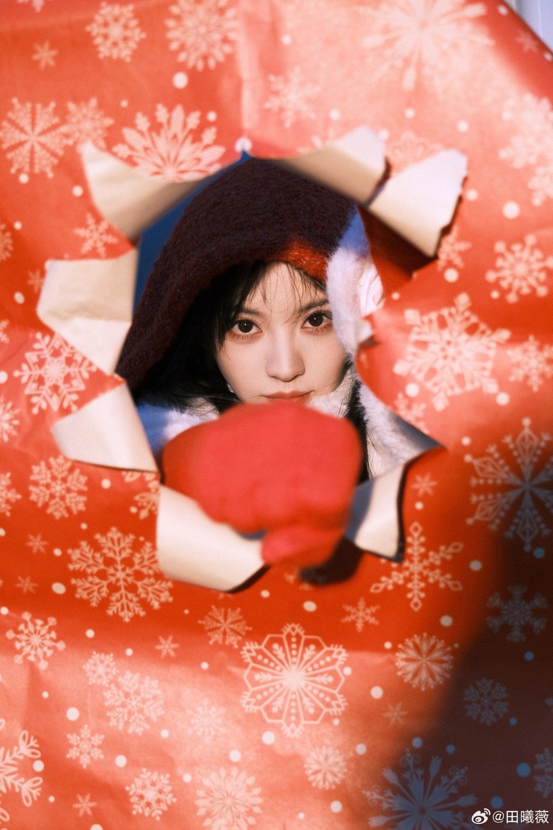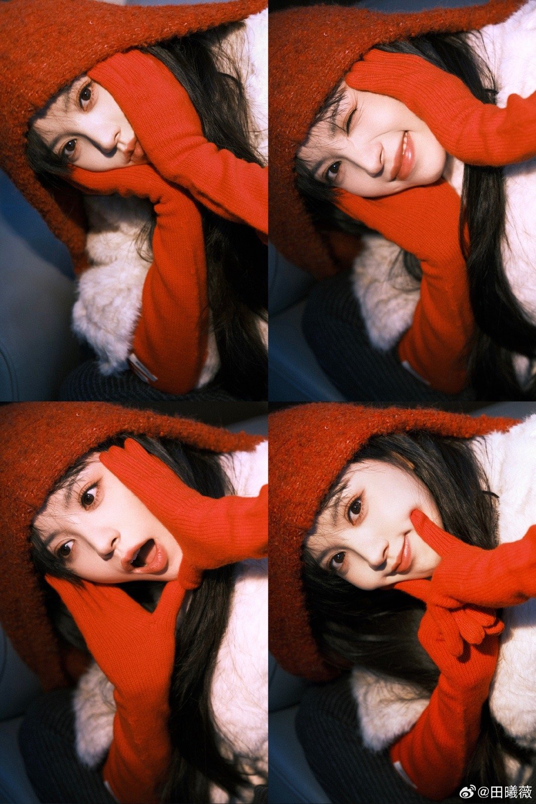 田曦薇红帽子红手套蓝袜子田曦薇元宵节营业,红帽子红手套蓝袜子,这个小田完全是搭