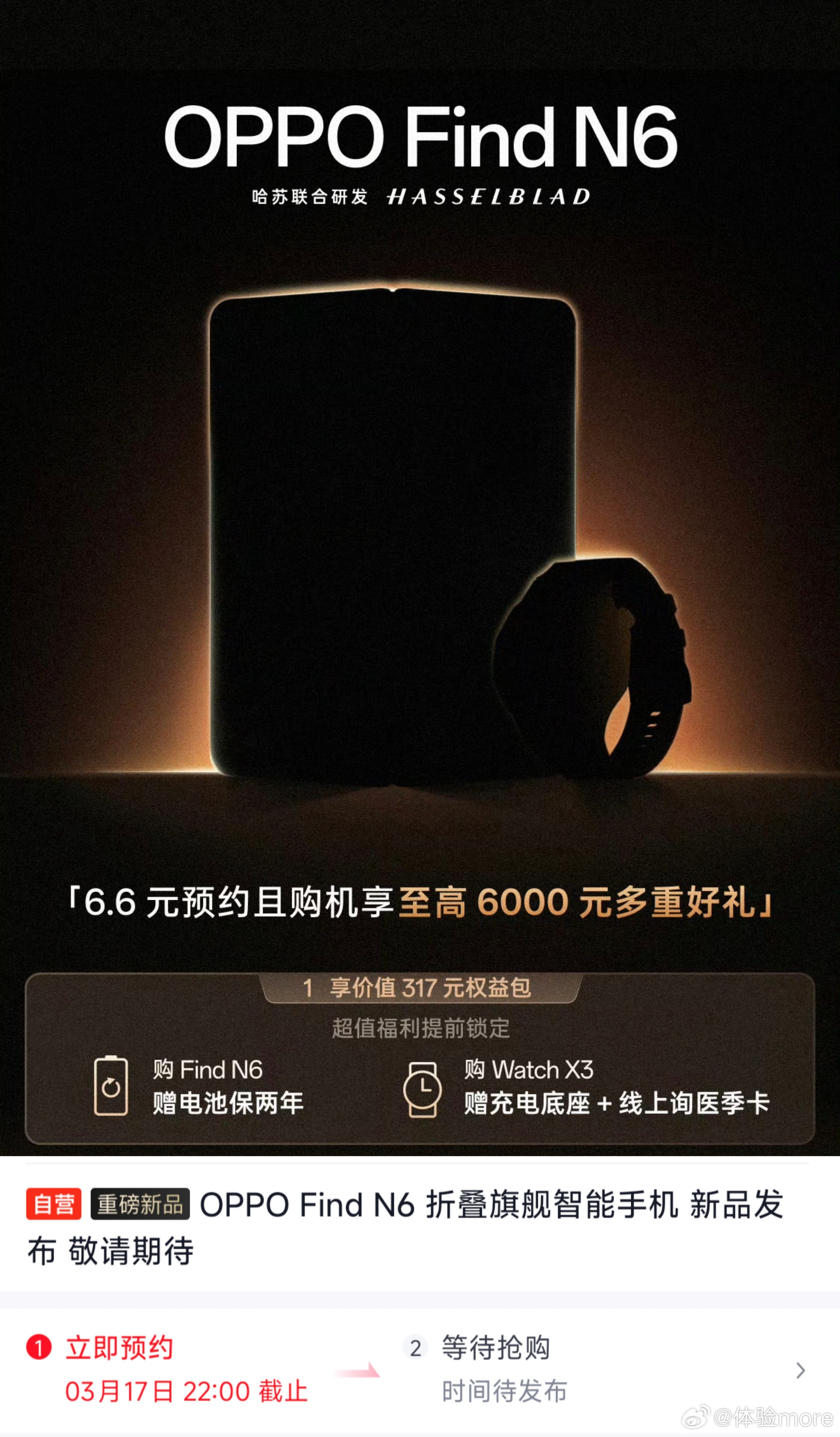 OPPO Find N6的发布日期和颜色官方都告诉你们了,317元权益包和3月17日停止预约,橙色/钛色/黑色元宵。