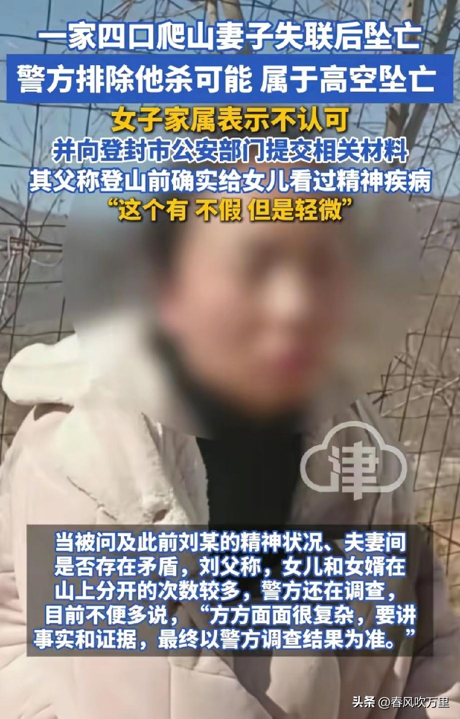 重庆爬山坠崖身亡的33岁女子刘美的表姐透露了刘美生前的一个重要信息,就是刘美在QQ空间发了一些修行和寻找所谓的师父的动态,而且表姐还说了刘美去年夏天曾经因为精神问题住院了一段时间,这一点与刘美父亲所说的刘美确实存在一些精神问题也很吻合。 而且不知为何刘美在过年的时候还突然把表姐的QQ删除了。 通过表姐的说法来看刘美生前确实存在着一些反常行为。 按理来说现在我们更多的是会在微信发朋友圈,而刘美却在QQ空间发关于修行和寻找师父的动态,说明她要么是相信一些不科学的东西的,而且不太想让人知道,要么就是精神问题没有得到彻底的控制。 而且也有目击者发声了当天一家四口的爬山状态,是刘美光着脚在前边走,两个孩子跟在后边,丈夫是拖着行李箱扛着行李跟在最后面,如此负重爬山会拉开距离也属正常,而且丈夫还曾和这位目击者询问过是否见过刘美,说明他还是很关心妻子的。 再结合刘美的丈夫曾说妻子在走失时神情恐惧,语言也表达不清,一直说自己害怕什么的,推测刘美极有可能精神问题导致她当时思维混乱不小心坠崖了。 当然这也是一种推测,毕竟此事确实是存在着诸多疑点的。 目前警方是已经排除了他杀的可能,刘美的娘家人是不太认可的,所以最终案件会如何走向,我们还是等警方的进一步调查。