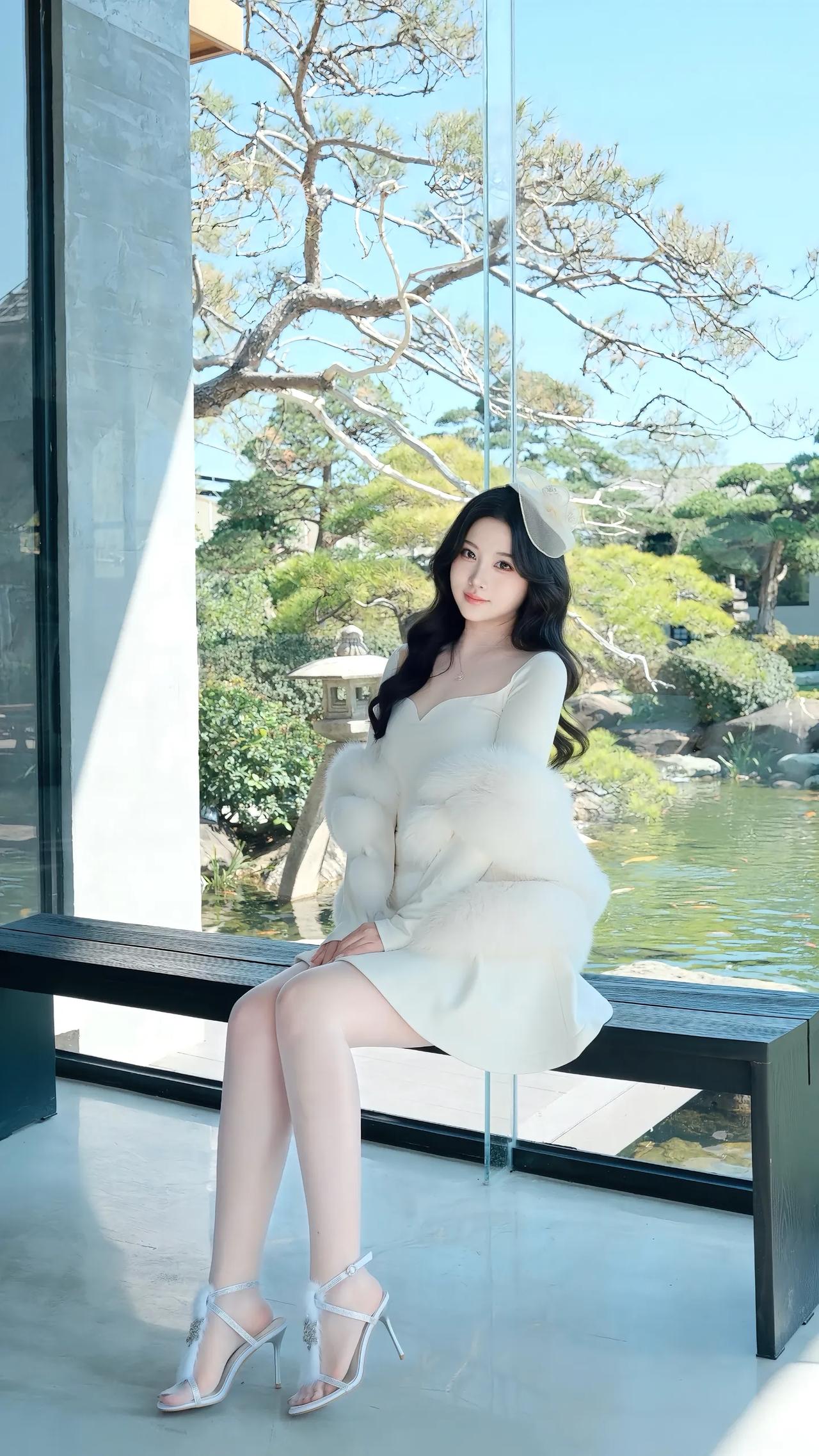 白色皮草搭配黑丝美腿,散发着迷人的魅力!