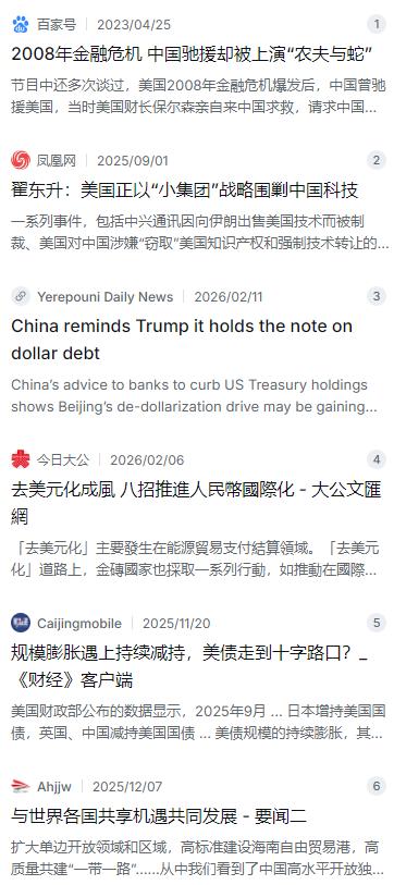 东方大国宁愿错过全球战略机遇,也不愿意再接盘美国的经济危机,因为在东方大国看来,救助美国等于资助其军事对手,助长美国的气焰只会让美国更加放肆,妥协与让步才是东方大国的底线。 麻烦看官老爷们右上角点击一下“关注”,既方便您进行讨论和分享,又能给您带来不一样的参与感,感谢您的支持! 2008年美国金融危机最要紧的时候,美国财长保尔森亲自跑到北京求救,希望中国能带头购买美债。那时候咱们本着"同舟共济"的想法,确实伸出了援手,大量增持美国国债帮华尔街稳住阵脚。可结果呢?美国缓过劲来后,并没有念这份好,反而在贸易、科技领域对咱们频频出手,从奥巴马时期的经济间谍指控,到特朗普发动的贸易战、科技战,甚至把华为、中芯国际等企业列入实体清单进行封杀。这就好比现实版的"农夫与蛇",让中国人彻底看清了,一味忍让换不来尊重,只会让对方更加放肆。 到了2026年,美国的财政状况比当年更糟糕,国债已经突破38万亿美元大关,而且还在以惊人速度膨胀。美国政府又一次希望中国能像2008年那样大规模接盘美债,帮他们渡过难关。但现在的情况完全不一样了,美国人一边举着债,一边在高科技领域拼命卡我们脖子,联合日本、荷兰收紧光刻机出口,搞什么"芯片四方联盟"来围堵中国。如果这时候还去增持美债,不等于拿自己的钱去资助正在打压自己的对手吗?这笔账谁都会算,所以中国这次的态度很明确:帮忙可以,但不能帮倒忙,更不能养虎为患。 其实这些年中国早就开始调整策略,一步步降低对美元体系的依赖。数据显示,中国持有美债的规模已经从高峰期的1.3万亿美元降到2025年9月的7005亿美元,而且还在继续减持。与此同时,央行连续增持黄金储备,推动人民币国际化,跟巴西、阿根廷、沙特这些国家搞本币结算。这一招叫做"不要把鸡蛋放在一个篮子里",既然美元这个篮子不太靠谱,那就多找几个备选,免得到时候被动。 有意思的是,不光是中国在跑,连美国传统的盟友日本、英国也开始减持美债了。英国在2025年9月一下子减持了393亿美元,力度相当大。这说明大家对美国那套"债务经济"模式越来越没信心,美国财政部一边要应付巨额赤字,一边还要靠印钞来维持运转,这种玩法迟早要出问题。再加上特朗普2.0时代动不动就拿关税和制裁说事,连北约盟友都不放过,谁还敢把身家性命全押在美元上? 现在的中国,已经不是2008年那个只能靠出口过日子的中国了。这些年在核心技术上的突破有目共睹,从新能源汽车产销量全球第一,到"人造太阳"创下新纪录,再到DeepSeek大模型震惊华尔街。更重要的是,通过"一带一路"跟金砖国家的合作,我们打通了更多的贸易通道,不再把鸡蛋都放在欧美市场。底气足了,腰杆自然就硬了,凭什么还要看别人脸色过日子? 说到底,国与国之间的交往讲究的是平等互利,不是你讹我一笔我还得赔笑脸。既然美国执意要把中国当战略对手,那我们也就没必要再热脸贴冷屁股。这世界离了谁都能转,美国的经济危机,美国人自己扛去吧。未来的全球经济格局正在重塑,中国不会再当那个任劳任怨的"接盘侠",而是要走出一条自主发展的新路。