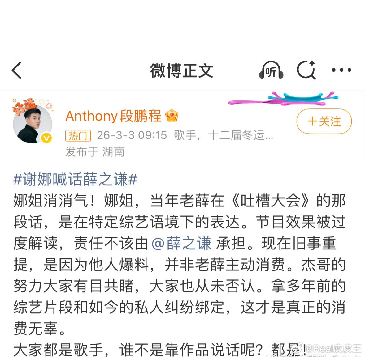 薛之谦好友吐槽张杰谢娜谢娜喊话薛之谦