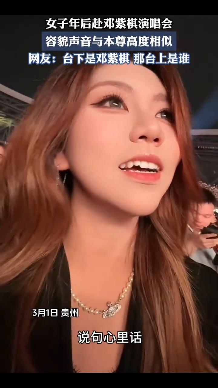 女子年后赴邓紫棋演唱会,容貌声音与本尊高度相似。 网友:台下是邓紫棋,那台上是谁? 3月1日贵州。 说句心里话,你还怀念吗?第一次发唱片就一马当先,从此在大场面。我不在站旁边,我是真的感谢,佩服你的眼界。