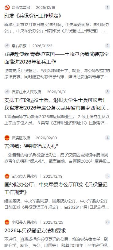 国防部直接下达硬核指令,全面锁定所有十八岁的男性公民!从今年起,必须按规定完成兵役登记,这道铁律死死咬住升学和就业的关口。 2026年春天,这份新规已经正式落地,走进了千万有适龄男性公民的家庭。 可能很多家长和男生还没太当回事,觉得兵役登记是可有可无的事,殊不知现在它已经成了人生路上的硬通关口。 麻烦看官老爷们右上角点击一下“关注”,既方便您进行讨论和分享,又能给您带来不一样的参与感,感谢您的支持! 今年一开年,家里有2008年出生的男孩的家长们,可能都注意到了一个大动静。国防部这回是动真格了,直接把一条“硬杠杠”摆在了所有人面前:所有刚满18岁的男性公民,从今年起必须完成兵役登记。这可不是往年在网上随便点两下就能糊弄过去的小事,2026年的春天,这项新规已经沉甸甸地落进了千家万户,成了年轻人走向社会的第一道“硬核”关卡。 可能到现在,还有些家长和半大小子们没转过弯来,觉得兵役登记嘛,就是登个记,我又不打算去当兵,应付一下得了。实话跟你说,这种老黄历今年可真翻不得了。根据国务院和中央军委办公厅联合发布的《兵役登记工作规定》,从2026年1月1日起,这事儿彻底变天了 。现在的兵役登记,就像办身份证一样,成了每个人的“标配”。它不再只是一项单纯的国防动员摸底,而是跟你家孩子未来的升学、就业、甚至出国办护照这些人生大事,死死地绑定在了一起。 说白了,这就是个“硬通关口令”。你家孩子要是没拿着这张“通行证”,往后的人生路上很可能就要遇到“此路不通”的尴尬。比如说,马上就来的高考报名,系统里会自动核验你的兵役登记信息;再比如大学毕业想考公务员,进入面试环节后的资格审查,人家第一件事就是看你的兵役登记证 。以前可能只是发个文件提醒一下,现在是动真格地把它嵌进了教育、公安、人社这些部门的办事流程里,你想绕都绕不开。 很多人不理解,国家为啥今年要把这事儿卡得这么死?咱们看事得看透,这背后其实是国防部应对复杂国际形势的一步大棋。通过给所有适龄青年建立一份详实的信息档案,国家就能精准掌握到底有多少“家底”,一旦有需要,这些登记在册的后备力量就是保家卫国的底气 。这就像一个大家长,得知道自己家里到底有多少能扛事的壮劳力,心里才有底。所以,别再把这事儿看成是走形式,它实实在在是在为国防长城添砖加瓦。 那么,到底哪些人该登记?时间怎么算?咱们说得通俗点,只要你是男性,在2026年12月31日之前年满18周岁,也就是2008年出生的那批小伙子,就一个都不能少,全都得去全国征兵网上走一遭 。登记的时间窗口拉得很长,从1月1日一直开到9月30日 。就算你超过了18岁,但只要还没到24岁,以前没登过记的,这回也得老老实实去补上这一课。 登记的方式倒是很简单,跟上时代了。现在都是数字化,年轻人拿着手机或者电脑,登录“全国征兵网”填个表就行,几分钟就能搞定 。最方便的是,今年开始全面推行电子兵役登记证了 。办完之后,你在系统里就能生成一张具有法律效力的电子凭证,跟以前的纸质版红本本一样好使,还不怕弄丢,随时能查。当然,要是家里孩子在外地,或者实在不会操作,去户口所在地的乡镇武装部,那里的工作人员也会手把手帮你办好 。 这里得重点敲个黑板,纠正一个最大的误区:兵役登记不等于让你去当兵。很多孩子一听要当兵就害怕,觉得自己吃不了那个苦,或者身体条件不行,想方设法躲。大错特错!登记就是个“报户口”,告诉国家有这么个人;真要当兵,还得在登记之后单独报名,经过体检、政审等一系列严格的筛选才能入伍 。登记是义务,报名是志愿。你就算戴着一千度近视眼镜,或者因为身体原因根本不符合参军条件,也照样得完成登记,只不过在系统里会给你标记个“免服兵役” 。别因为这点事儿耽误了孩子的前程。 真要是拖着不办,后果到底有多严重?咱们翻翻《兵役法》和相关规定,那可不是闹着玩的。首先,公职系统的大门基本就对你关上了,公务员、事业单位、国企,想都别想 。其次,出了远门也麻烦,想办护照出国旅游?不行;想办贷款买房买车?银行那头的征信系统里可能就给你记上一笔失信,因为国家已经把“拒绝国防义务”列入了联合惩戒的范围 。甚至有些地方还跟学籍挂钩,办不了入学、拿不到毕业证 。这一连串的连锁反应,就因为一时偷懒,代价实在太大。 好在现在基层的执行力度也跟上来了。像陕西的吉河镇,今年就已经实现了适龄青年登记率百分之百 。当地的孩子们说,拿到那张电子凭证的那一刻,感觉就像收到了一份特别的“成人礼”,不仅没觉得麻烦,反而有了一种被国家“点名”的光荣感 。从内蒙古的土牧尔台镇到山东的莱阳市,各地的武装部都在搞“敲门行动”,挨家挨户地查漏补缺,生怕一个孩子掉了队 。