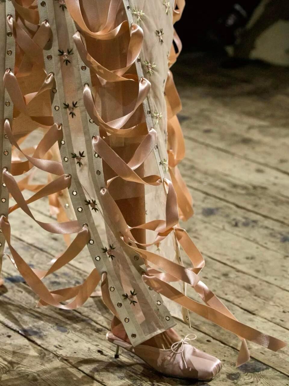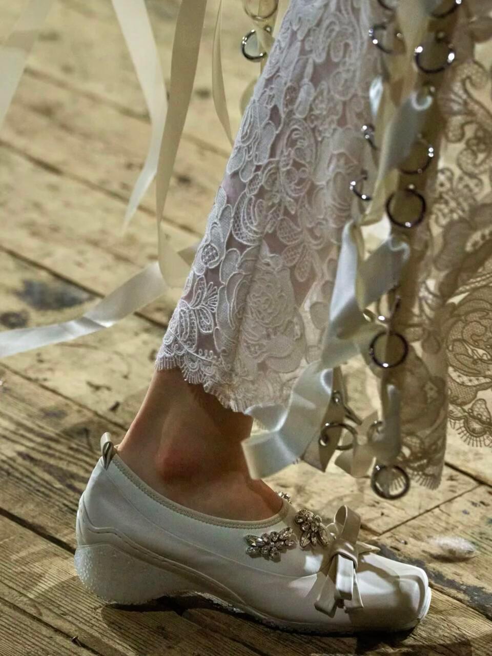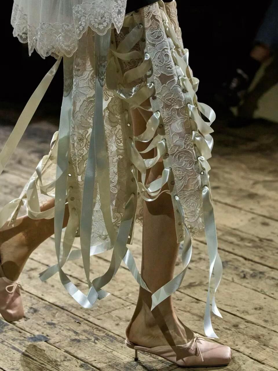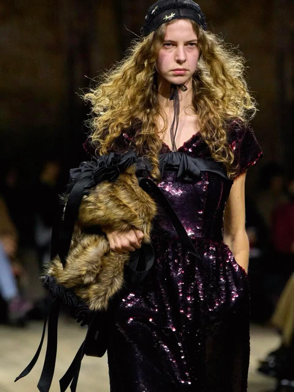 直击时尚幕后时装周米兰时装周 Simone Rocha 2026秋冬大秀,把爱尔兰古老传说和运动基因,织进了浪漫又神秘的诗意梦境里。灵感来自神话里的纯白神驹Enbarr,它能通往青春之地Tir na nÓg,成了整场秀的灵魂。色调取自爱尔兰画家笔下的青春之地,再融入复古女装轮廓:茶歇裙、钟形帽、宽肩西装和阔腿裤,优雅中藏着克制的力量。本季最大惊喜是和Adidas Originals的联名,神幻传说撞上街头运动。三叶草徽标被重新设计,荷叶边、蕾丝和三条杠外套相融,开叉裤装、毛绒连帽夹克打破了刚柔边界,浪漫和运动第一次这么和谐共存。细节依旧是杀手锏:缎带玫瑰结、绳结口袋、金属扣环,在薄纱和毛皮间形成迷人反差。丝带、钩扣层层缠绕,像把荣誉和记忆穿在身上,狂野又精致。有人说她的设计甜软,但这一季证明:浪漫不是脆弱,而是可以披荆斩棘的铠甲。神驹奔过青春之地,传说落在衣摆之间,这是一场献给所有浪漫灵魂的温柔庆典。