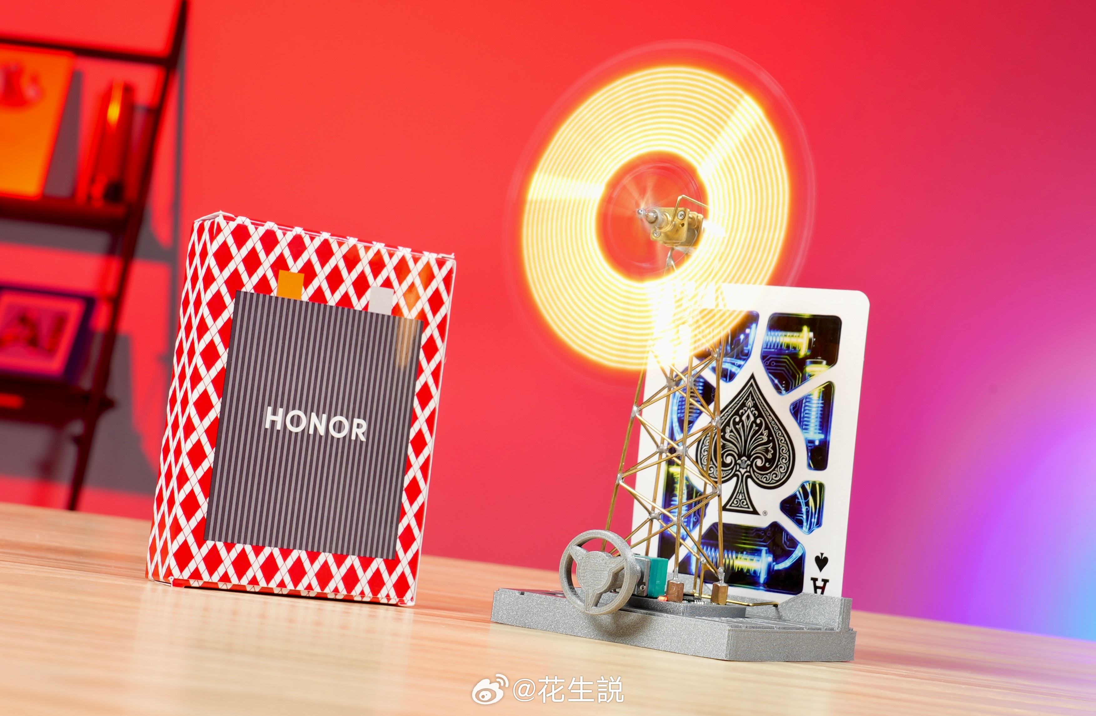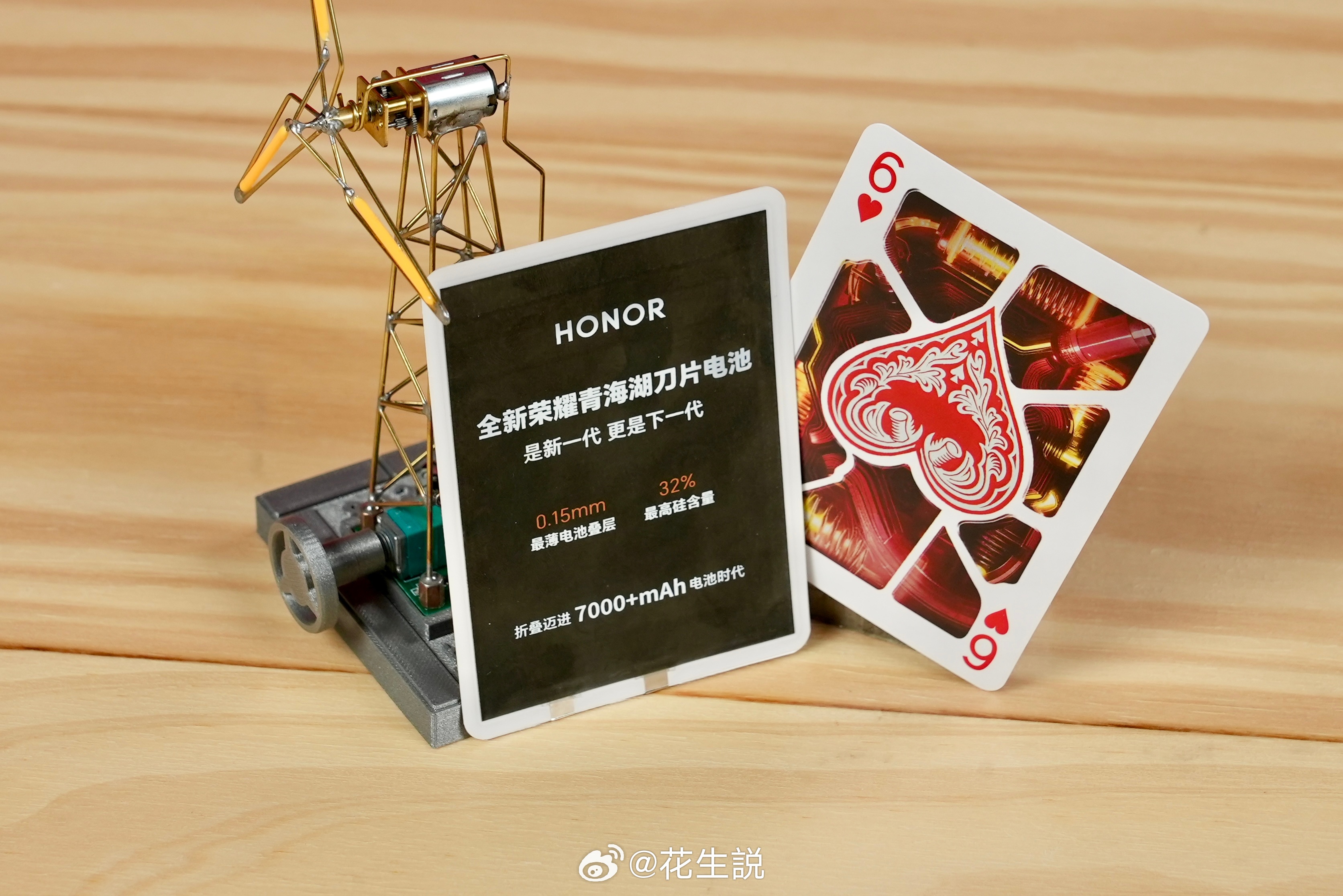 我要验牌,不对,牌有问题!这副牌里还藏着一块电池,插到风车摆件上就亮起来了这也太离谱了吧,荣耀青海湖电池跟纸牌差不多厚,怪不得折叠屏也能上7000mAh大电池呢