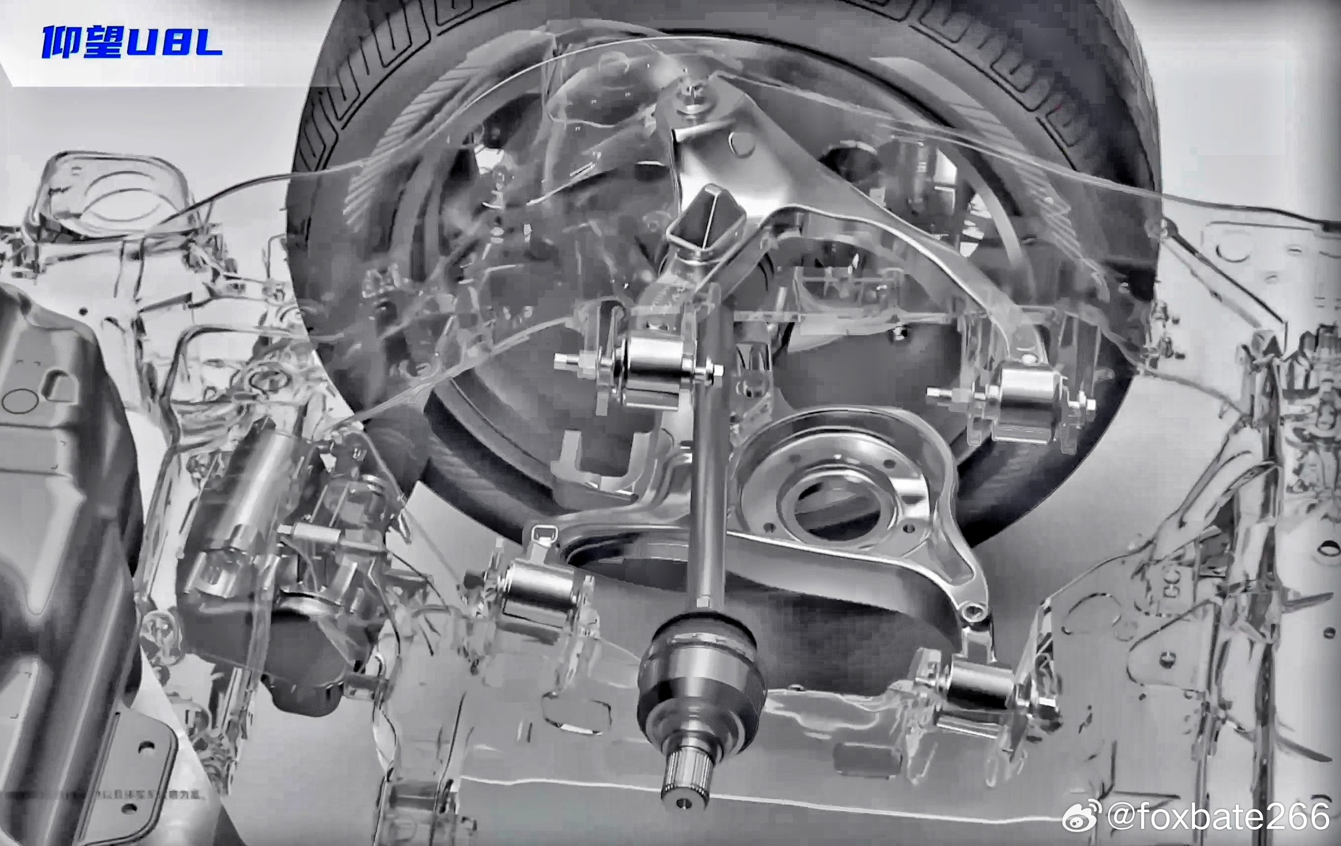 仰望U8L的后腿。。。上个视频的截图暗部增强。。。上下A臂,前置toe带转向。纸