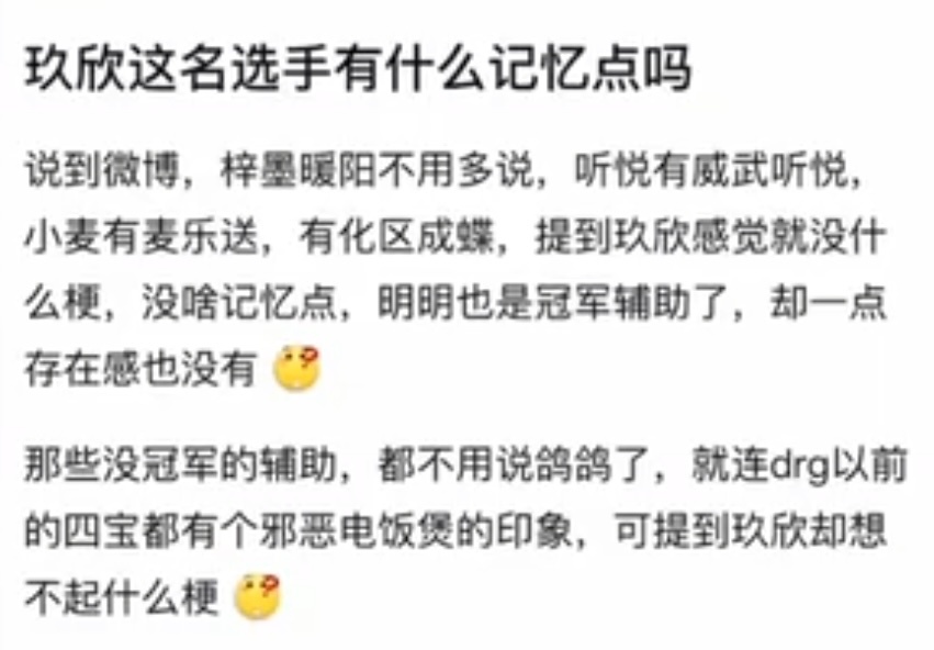 kplK吧:玖欣这名选手有什么记忆点吗?