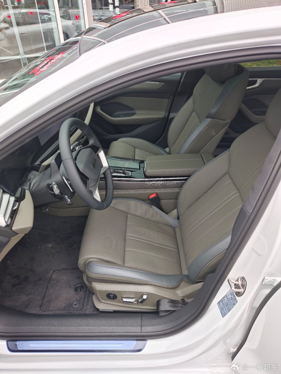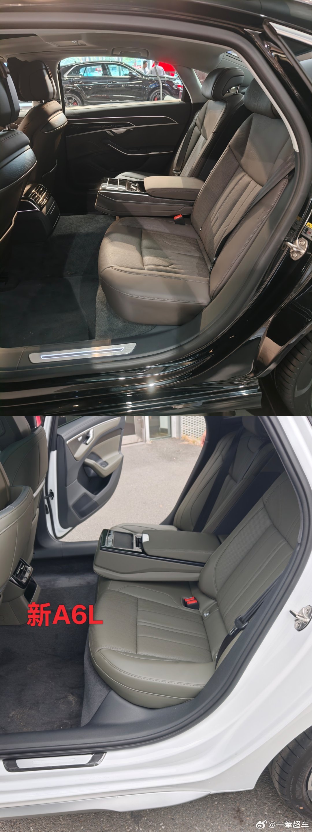 这代a6l座椅舒适性终于有豪华车该有的水平了,前排坐着挺硬我以为后排和老款没啥区别,没想到坐进去试那种宽大包裹感很强的座椅,坐垫长靠背又很舒适,座椅材质软中有硬,硬中有软,舒适的同时又有座椅包身体包裹起来的感觉,同时坐了下展厅的a8l,感觉舒适性比a8l还要好很多。和5E对比,我也觉得新6的后排舒适性更好。不过内饰豪华感我觉得就差点意思了,大面积的钢琴烤漆材质让它整体感很单调,尤其是杯架盖那个位置看起来很廉价,沾了指纹更是没法看。