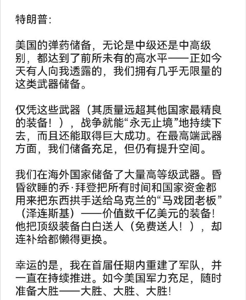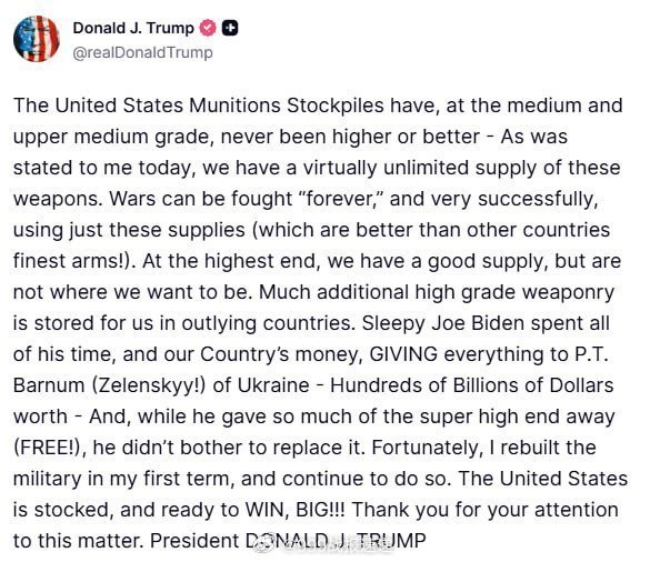 特朗普:“ 我们拥有无限量的高科技弹药……”