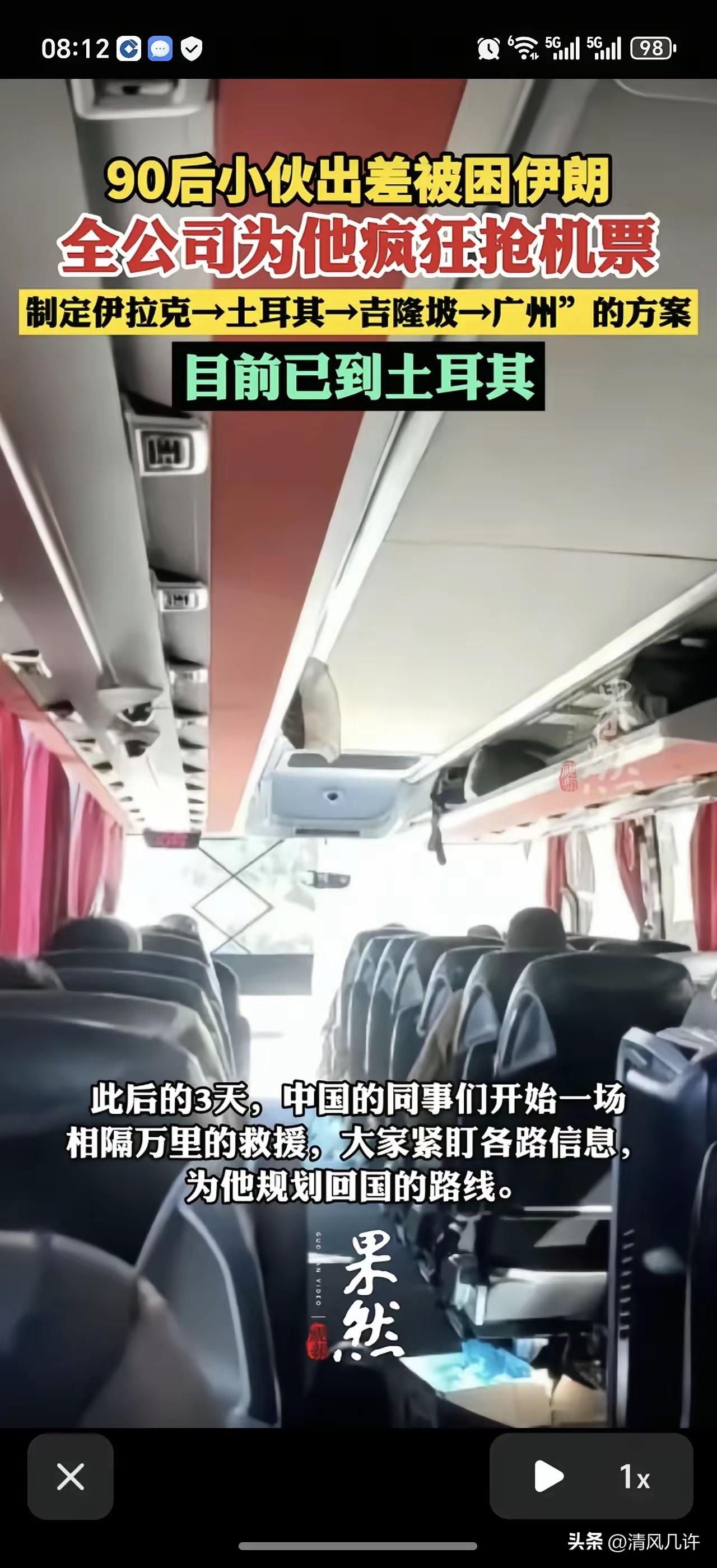 “神仙同事”。伊朗,一28岁广西小伙黄勇鑫原本只是去伊朗出差,结果突然赶上爆发冲突,直接被困在伊朗,人还突然失联6小时,好不容易联系上他后,就在他孤立无援的时候,远在几千公里外的全公司同事开启了“跨国救援”,20多个人帮他抢机票、规划路线,硬是搞出了一条“伊拉克→土耳其→吉隆坡→广州”的绕地球半圈回国方案。网友:这班加得太值了,这同事关系比黄金还硬! 2月28日,广州办公室的空气像被瞬间冻住。 合伙人曾传斌刷到美以袭击伊朗的新闻,几乎同时,整个公司发现黄勇鑫联系不上了。电话打不通,消息石沉大海,22个人盯着屏幕,手指在键盘和手机屏幕上反复敲击,每一秒都像在熬。没人提加班费,没人说累,所有人只有一个念头:把黄勇鑫接回来。 黄勇鑫当时正在从伊拉克返回伊朗的路上。当地时间清晨5点半出发时,一切还风平浪静,等他抵达伊朗边境,局势已经急转直下。 上午9时,他在边境等大巴时,接到公司创始人罗湘梁的电话,才知道德黑兰已经遇袭。紧接着,大不里士的朋友发来消息,说当地“快速进入战争状态”,信号彻底中断前,他只来得及回复一句“我没事”。 他试图打车去大不里士,司机开出的车费让他瞬间警觉——15亿里亚尔,约合7000元人民币,而平时这段路只要70元。他立刻要求停车折返边境,在那里,他幸运地捕捉到一丝微弱的2G信号,给广州发去了平安信息,随后便彻底失联。 那6个小时,广州的办公室像一个战场。同事们分成了几个小组,有人24小时刷新新闻,紧盯局势变化;有人疯狂拨打伊朗和伊拉克的大使馆电话,咨询撤离通道;还有人守在各大票务平台,刷新每一条可能的航班信息。 他们甚至设置了多个闹钟,在不同时区的放票时间点准时出击,有人连续30多个小时没合眼,就为了不错过任何一张可能的票。 当黄勇鑫终于在伊拉克埃尔比勒恢复信号,报出“我到伊拉克了”时,群里瞬间炸开了锅。短暂的狂喜过后,所有人立刻投入到下一个环节:规划路线。 直飞回国的航班早已取消,空域也被关闭。 同事们翻遍了所有可能的路线,排除了所有高危区域,最终敲定了一条迂回但安全的路径:从伊拉克坐大巴到土耳其,再从土耳其飞吉隆坡,最后转机回广州。这条路线绕了大半个地球,但每一步都经过了反复推演。 抢票的过程堪称一场硬仗。机票价格飞涨,余票秒空,同事们分工协作,有人盯着伊拉克到土耳其的大巴票,有人刷新土耳其到吉隆坡的航班,还有人守着吉隆坡回广州的机票。他们甚至发动了在中东的合作伙伴,帮忙核实每一条路线的可行性。 黄勇鑫在伊拉克的日子也不好过。他花50美金买了一张从埃尔比勒到伊斯坦布尔的大巴票,30多个小时的车程,检查严格,路况复杂。他三天只休息了12个小时,为了不让远在广西的家人担心,他一直隐瞒着险情,只说自己“在国外出差,一切顺利”。 大巴在土伊边境检查了5个小时,当他终于踏上土耳其的土地,手机信号恢复的那一刻,他第一时间在工作群里报了平安。群里的同事们终于松了一口气,有人当场红了眼眶。 现在,黄勇鑫已经安全抵达土耳其,正赶往伊斯坦布尔机场。同事们已经帮他买好了后续的机票,3700元,不算贵,但这背后是22个人跨越时差的接力和守护。 这件事在网上传开后,网友们炸了。有人说“这班加得太值了”,有人感叹“这样的同事关系比黄金还硬”,还有人说“这才是中国企业的温度,无论多远,回家的路有人为你护航”。 在这个充满不确定性的世界里,最珍贵的从来不是冰冷的规则,而是人与人之间的守望相助。当一个人在异国他乡陷入绝境,远在千里之外的同事们没有袖手旁观,而是用一场跨越万里的“云救援”,为他筑起了一道坚实的安全屏障。 这不是什么惊天动地的大事,却足以让人热泪盈眶。它告诉我们,在这个时代,最动人的力量,依然来自于人心的温度和彼此的担当。 各位读者你们怎么看?欢迎在评论区讨论。