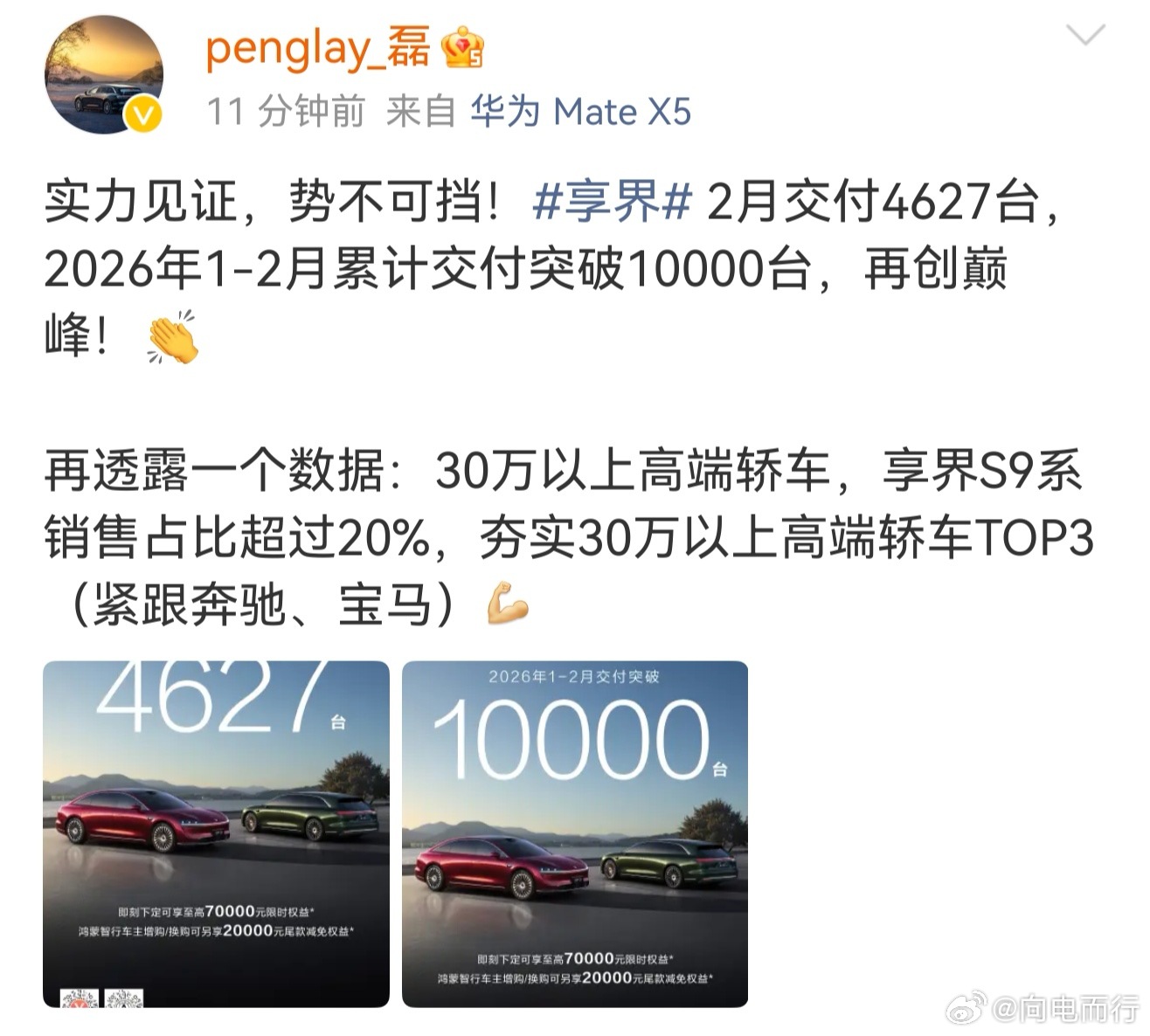 享界也是好起来了,2月交付4627台!享界s9t 成交付的主力军