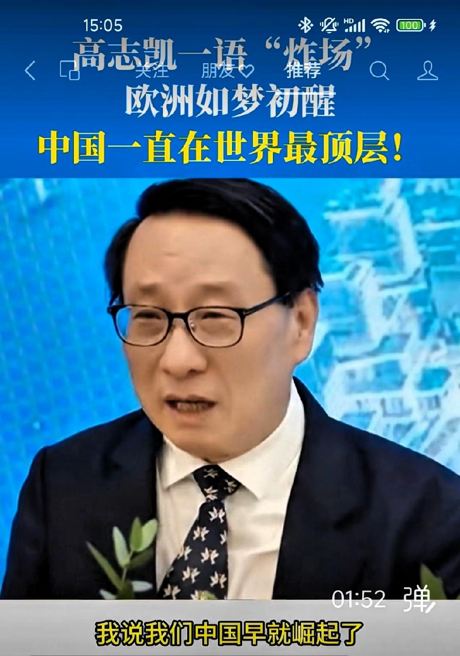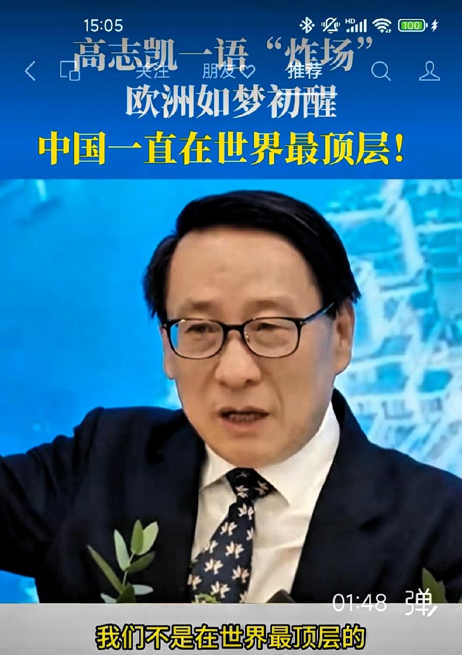 高志凯博士:中国一直在世界最顶层。 “中国不是一个崛起的国家。美国人说你中国崛起了,就好像你从零开始一样,你是从原始森林里冒出来的。我说我们中国早就崛起了。 5000年,什么时候我们不是在世界最顶层?中国一直在最顶层的,中华文化什么时候停止了?绝大部分的时间我们都是领先于世界的。西方人不要说中国是一个崛起的国家。最多你可以说中国是一个再次崛起的国家。 中国一直在顶峰,因为英国要强迫把鸦片卖给我们,发动鸦片战争,造成这100年来中国走下坡路。但是我们通过100年的痛苦探索,我们找到了一条新的路子。” 高志凯博士的话,点破了西方叙事长期遮蔽的一个事实:中国不是“新来者”,而是 “就位了”。 回望五千年,汉唐气象、康乾盛世,GDP长期领跑世界。我们在历史隧道里穿行过,经历过至暗时刻,但文明从未断流。所谓“复兴”,不是从零开始争第一,而是重回本该有的历史排位。 这不仅是自豪,更是清醒:既然祖辈登过巅峰,我们就该懂得——真正的顶层,不是居高临下,而是以五千年的定力,在惊涛骇浪中走好自己的路。这种自信,不张扬,却有分量。