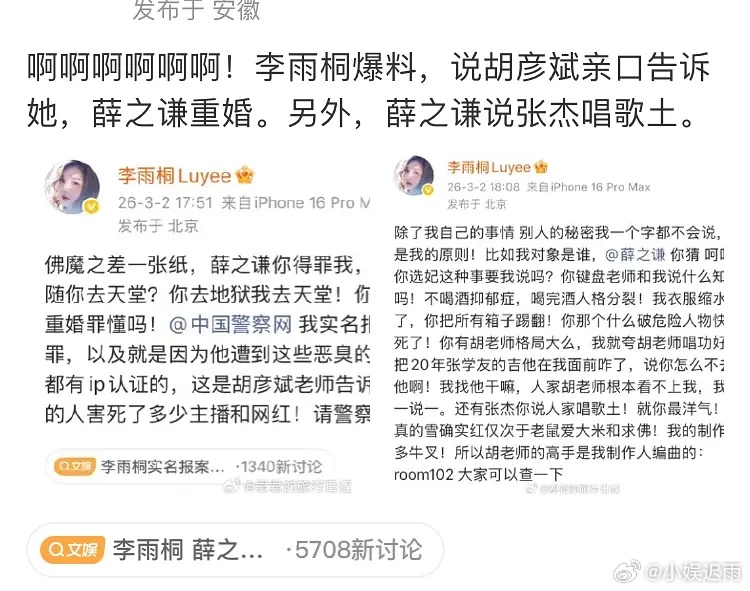 李雨桐爆料薛之谦说张杰唱歌土 你觉得两个人谁唱歌更好听?