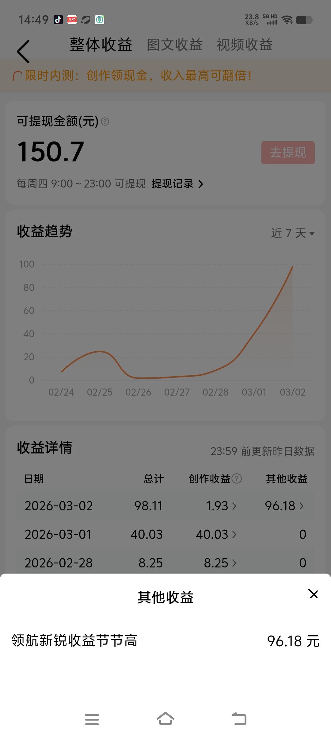 特别的日子特别的收获! 头条平台正月十五元宵节一份大礼! 领航新锐节节高奖励96.18已经收到! 谢谢平台推荐、奖励! 新的一年继续努力,跃马扬鞭! 祝福友友们元宵节快乐,头条相遇快乐同行!