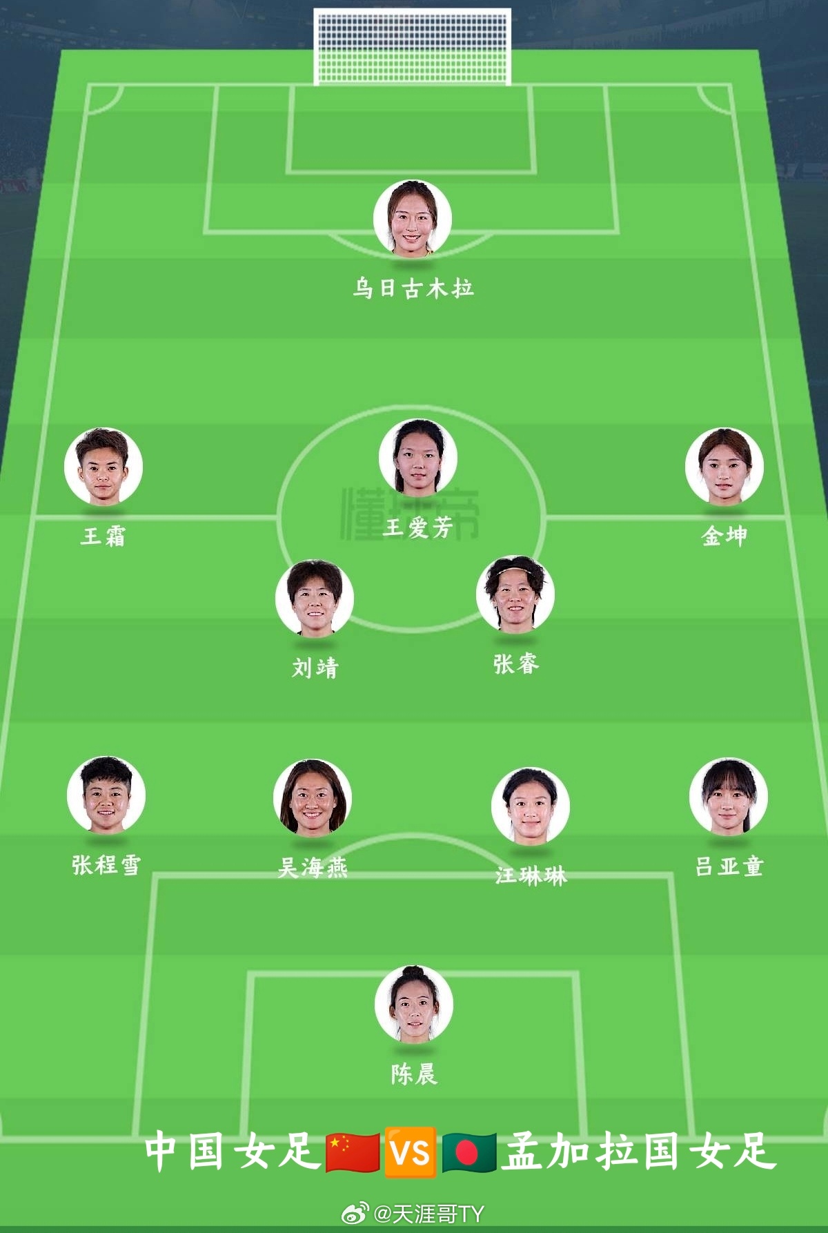 中国女足vs孟加拉国女足 /中国女足vs孟加拉国首发名单 门将:22号陈晨后卫:20号张程雪、4号汪琳琳、5号吴海燕、25号吕亚童中场:7号王霜、15号王爱芳、16号刘靖、26号张睿前锋:9号乌日古木拉、13号金坤中国女足首战对手平均身高149 中国女足
