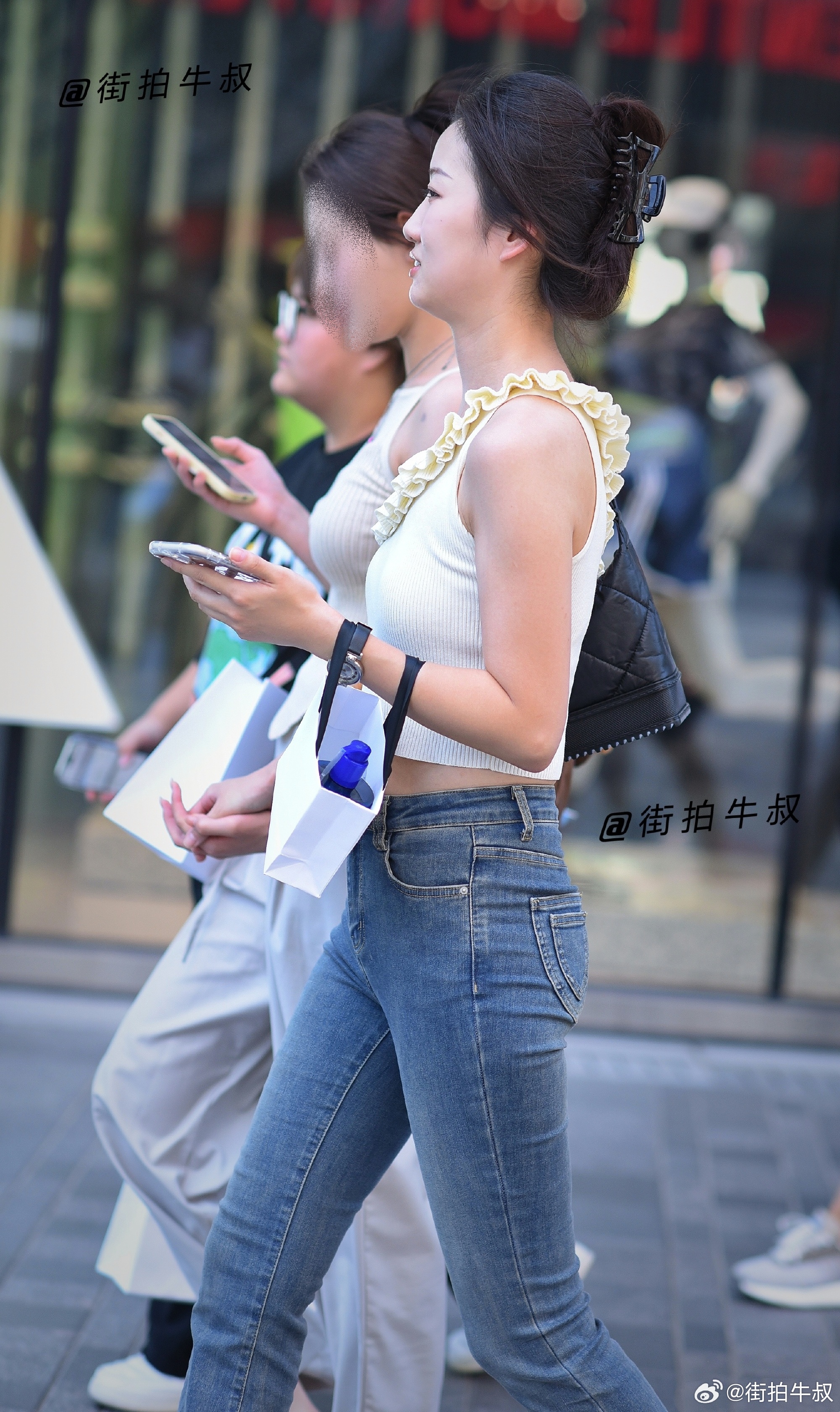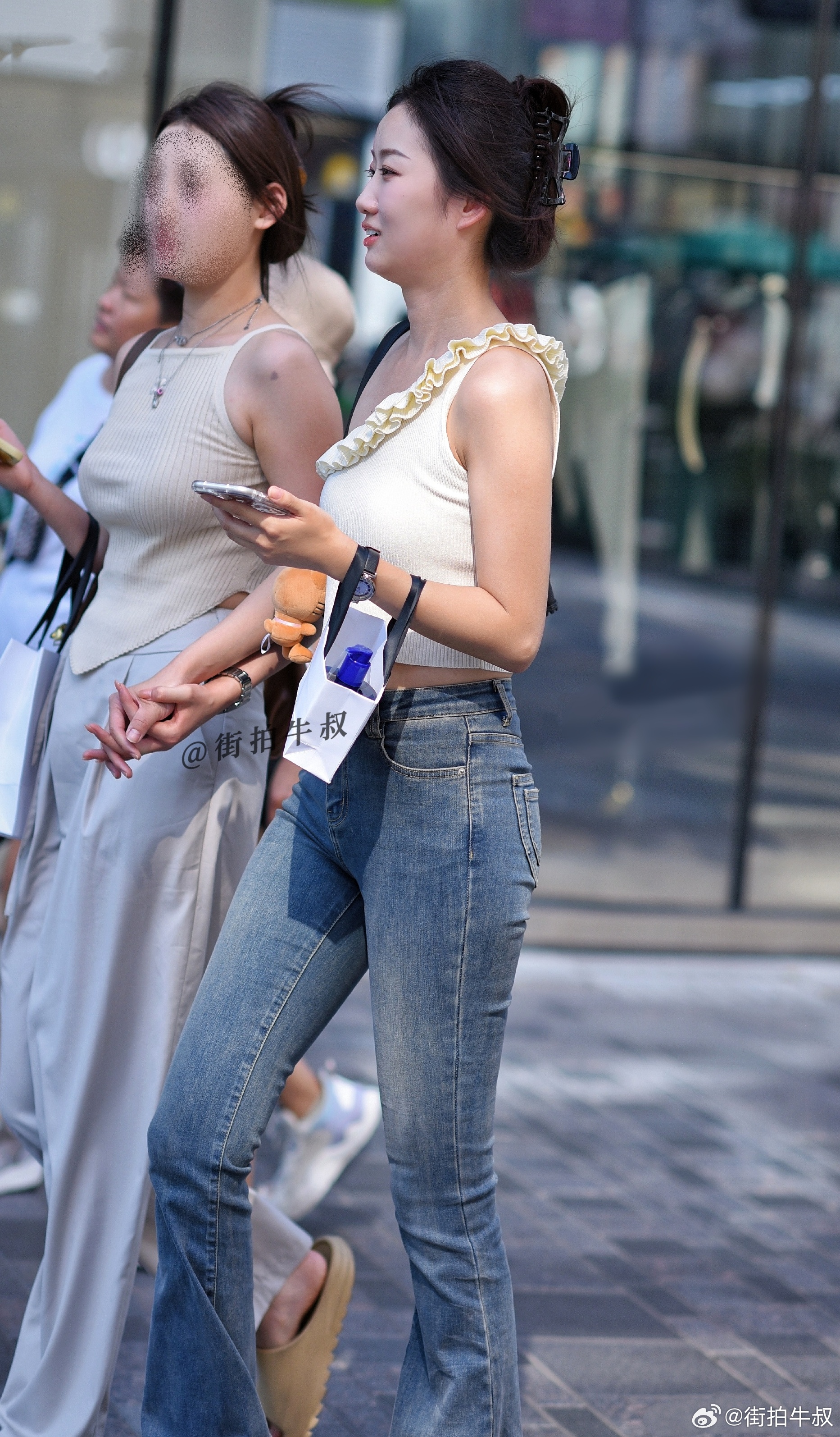漂亮的斜肩花边背心