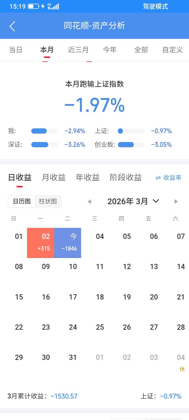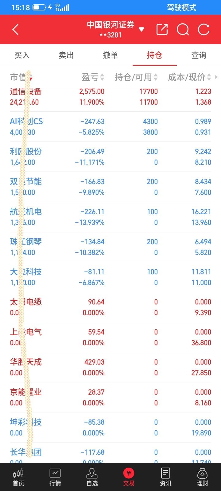 2026.03.03,今天又是悲催的一天,还以为昨天躲过了大战,但是还是认知不够,原来昨天早上暂时稳住诱多,今天才是真正是大跌,才修改了交易系统,又被主力发现了,反复收割了,早上还赚几百块钱,然后上证指数大跌,触发了多只股票自动止损了,然后又反弹了,反弹的时候又触发了买入条件单,又自动买入了不少,然后再次砸下来,今天买的止损都跑不了了,反反复复挨打,造成大亏。早上赚几百块钱,到收盘倒亏了1800多,多只股票跌停或者接近跌停,这两天仓位重了,大跌就又来了,我收盘能够卖的都卖了,可能明天就该上涨了,不卖不涨,不买不跌,始终走不出这个怪圈。 上能今天逆市跳空高开高走,最高冲到39.25,大涨6个多点,以为稳了,但是最终还是收大盘拖累,收盘还下跌了,收一条长影的阴线,放弃幻想,按照计划做吧,卖错了也要卖,收盘以36.80清仓卖掉100股,少卖了200多块钱,浮盈一场,这只股票还亏了一千多块钱,有机会再买回来吧。 反弹的时候以8.01买入100股双良,下跌中以7.78止损卖掉100股,后来又反弹了,反弹中以7.77再买回来100股,买入之后又下跌了,最终跌停了,新的策略多亏了几十块钱。 华胜触发了止损条件单,以29.10清仓卖掉100股,持有几天,离场赚400块钱。 早上反弹自动以6.01买入200股钢琴,又是诱多,下午又跌下来了,收盘以5.82卖掉100股,又多亏了几十块钱。 早上反弹的时候自动以11.81买入100股大位,买入之后浮盈了一点点,但是逐步下跌,收盘还跌停了,又多亏了80多块钱。 反弹中自动以8.92买入100股利欧,又买错了,买入之后就下跌,下跌中自动以8.50止损了100股,然后继续下跌,触底反弹又以8.46买回来100股,但是反弹无力,又多亏了几十块钱。 反弹中以14.38买入100股航天,但是弱势反弹,继续下跌,收盘以13.96止损卖掉100股,又多亏了48块钱。 科创etf下跌中想抄底,以0.976又买入500股,但是又抄在半山腰,收盘又大跌了,又亏了200多块钱了。 太阳今天也还是下跌,收阴线,昨天舍不得卖,今天收盘以9.39清仓卖掉100股,这次离场保住90块钱利润,还亏一点点,明天再买回来。 京能又高开冲高回落,收阴线,还是放弃幻想吧,收盘以8.16元卖出100股,这次保住20多块钱利润。这只股票两次盈亏相抵,赚十多块钱吧。今后放弃了。 坤彩高开低走,收大阴线,收盘以19.89清仓卖出100股,亏了80多块钱,明天再买回来。 长华继续下跌收阴线,收盘以11.74清仓卖掉100股,亏了120块钱。明天再买回来。 通信设备etf今天冲高回落,也是大跌,按照计划,网格交易收盘下跌了0.054元,收盘以1.368买入6000股。明天上涨就卖出,下跌再继续买入。 今天总市值3.50万元,总资产5.05万元,今天总体账户亏损1845元,一天把一个月的利润一下子亏完了,上个月又白干了。今天清仓了大部分股票,希望明天继续下跌,不然又是左右打脸了。但是我常常是反向指标,我卖掉了就应该会上涨了,上涨也好,至少还有一些股票,也不会完全踏空吧。