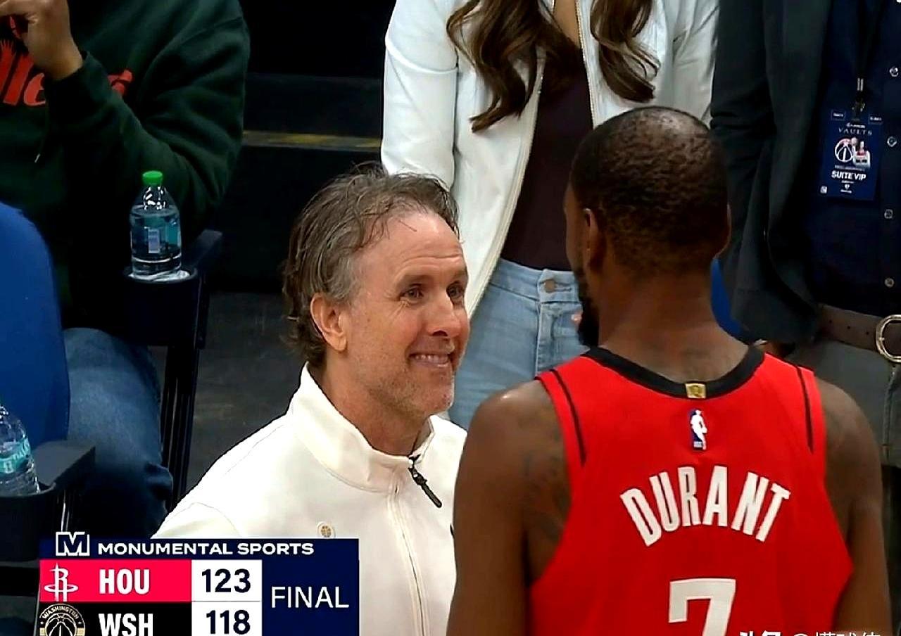 老母亲坐在场边第一排盯着,三十八岁的杜兰特硬生生把华盛顿的篮筐投成了自家后院。 奇才第四节掀起疯狗浪,差点吞噬火箭十九分的领先优势。乌度卡根本不敢换人,死死把杜兰特钉在硬木地板上整整三十七分钟。体能透支让他连丢两球,甚至急眼推人吃到技术犯规。但当对手把比分咬到你嗓子眼时,杜兰特踩着三分线拔起就是一个后撤步,篮球空心砸进网窝。这记跳投直接打服奇才主帅基夫,赛后他拉着杜兰特摇头苦笑说,防线布置得再密,也挡不住你闭着眼睛拿三十分。申京也在内线狂砸三十二分十三个篮板,帮球队惊险拿下胜利。 别管岁月怎么催人老去,别管体能怎么亮起红灯。你大爷永远是你大爷,死神永远是那个死神。