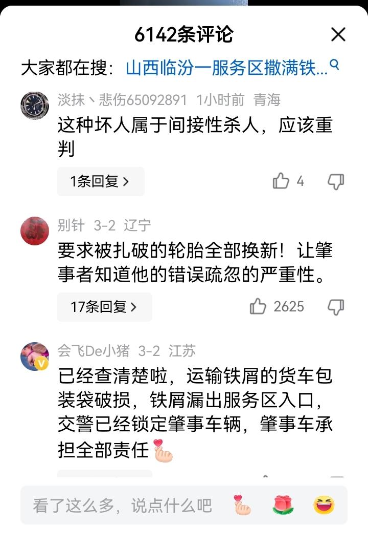 深夜惊魂!山西一服务区五六十辆车集体“中招”,真相让人后怕 凌晨的山西临汾襄汾服务区,成了车主们的噩梦现场。数十辆汽车轮胎被扎破,车主们在寒风中焦急等待,场面一度混乱。 起初,“有人故意撒钉”的猜测让人心惊肉跳,网友们纷纷怒斥“这是间接杀人”。 但随着警方连夜调查,真相终于水落石出:并非人为,而是一辆运输铁屑的货车因包装破损,导致大量尖锐铁屑遗撒路面,过往车辆无一幸免。 目前,涉事货车已被锁定,保险公司也已介入理赔。但这起意外也给所有人敲响了警钟:高速路上的每一次疏忽,都可能酿成无法挽回的后果。 你怎么看?欢迎在评论区聊聊你的看法。