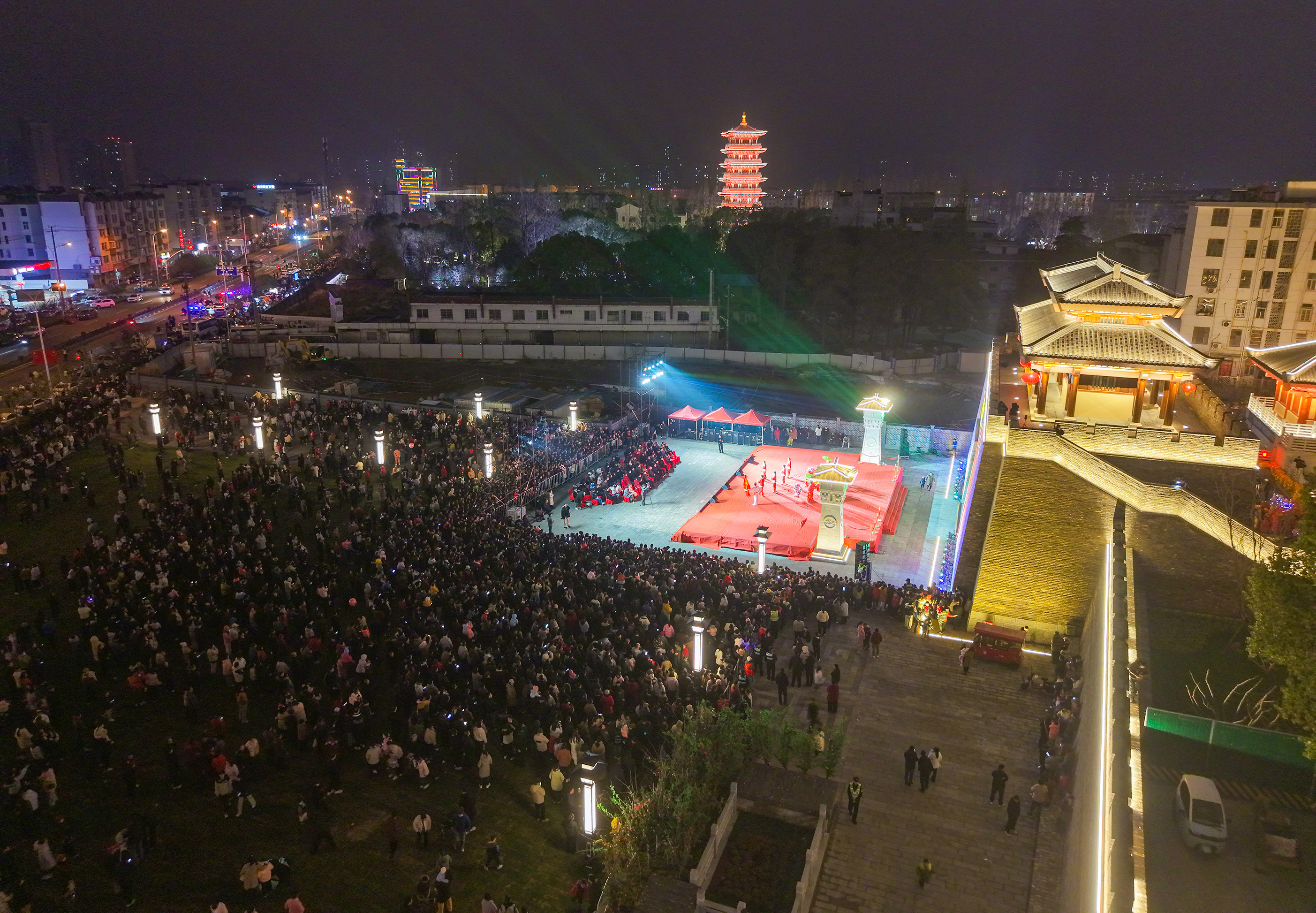 #网络中国节·元宵#【#庐江古城灯火闹元宵#】当夜幕轻垂,庐江古城墙被一盏盏花灯唤醒。3月2日,农历正月十四,来自全县各乡镇的非遗民俗花灯齐聚城门之下,一场跨越千年的灯火之约,在此璀璨绽放。
