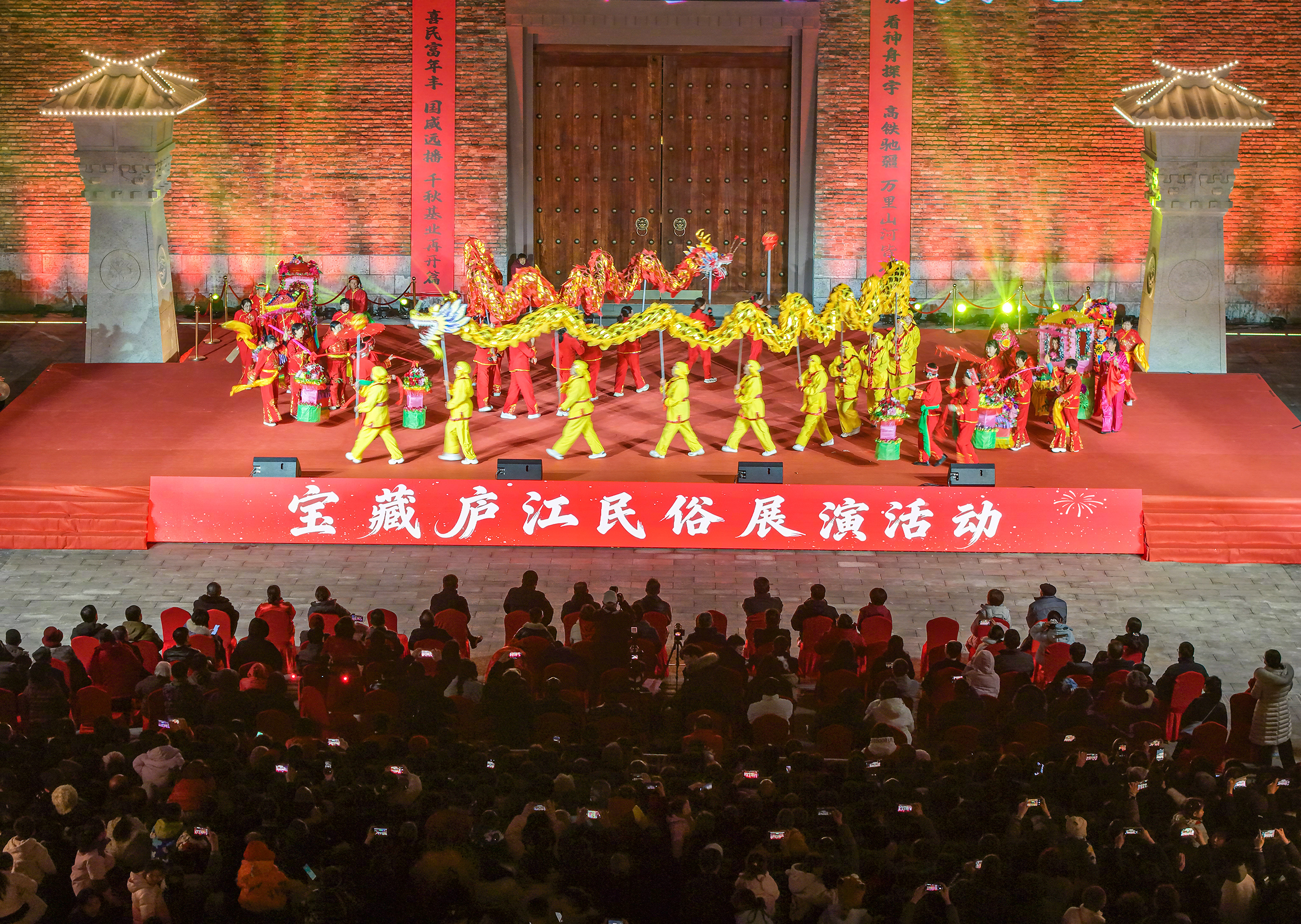 夜色为幕,城墙为台。往日肃穆的青砖黛瓦,此刻缀满红光。龙腾狮跃,花船轻摇,鱼灯流转——十余支乡镇队伍携百年技艺而来,用灯光勾勒出古城的轮廓,也照亮了近万市民热切的脸庞。锣鼓震天,人声如潮,庐江的年味,在这一夜被渲染得浓郁而炽烈。(大皖新闻)庐江:古城墙下灯如昼 千年民俗闹元宵