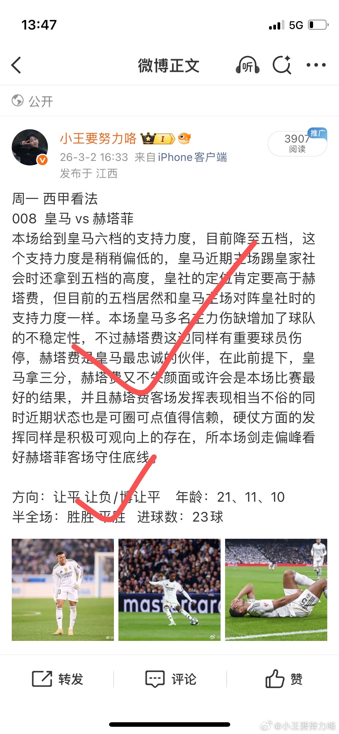 周一 西甲看法008 皇马 vs 赫塔菲本场给到皇马六档的支持力度,目前降至五