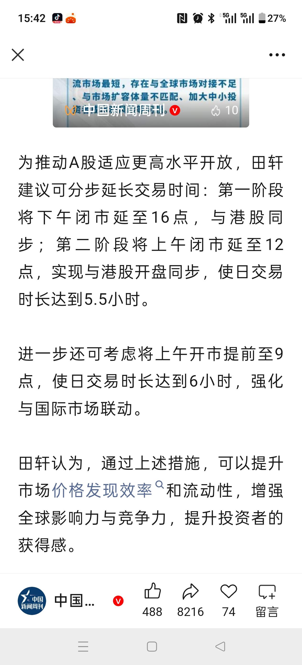 注意看啊! 人大代表两会期间提建议延长交易时间至4点! 你们说这是不是重大利好! 这类好建议就该多多提,人大也该好好考虑考虑采纳采纳! [比心][比心][比心][招财进宝][招财进宝][招财进宝]