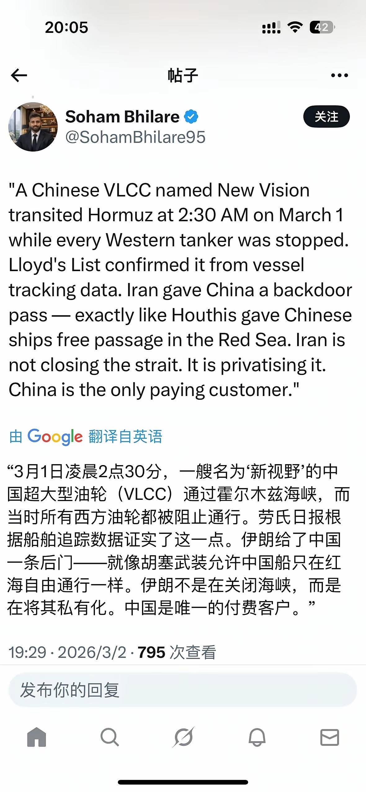 中国船只继续通过霍尔木兹海峡前往波斯湾装货?这也太刚了! 中东乱了套,伊朗被美以大规模轰炸,伊朗的导弹疯了一样反击,海湾地区的几个国家都遭到了打击,美军的基地被炸,美军雷达被炸,以色列全境被炸,波斯湾也有船只被摧毁,可在这样的情况下,中国船只仍然前往波斯湾装货,太刚了! 其实,继续通行波斯湾可能没有想象的那么危险。美以与伊朗之间主要是隔着波斯湾对轰,船只在波斯湾航行被空中打击的概率不是很大,但这个“不是很危险”仅限于中国船只,就像去年美军和胡塞武装的“红海大战”,其他国家的船只都跟在中国船只后面通过红海,因为中国的船只谁也不敢炸。 这次也一样,中国船只通行波斯湾,伊朗和美国、以色列都得给面子,谁也不能动,其他国家的船只此时要是通行波斯湾,那就不好说了。