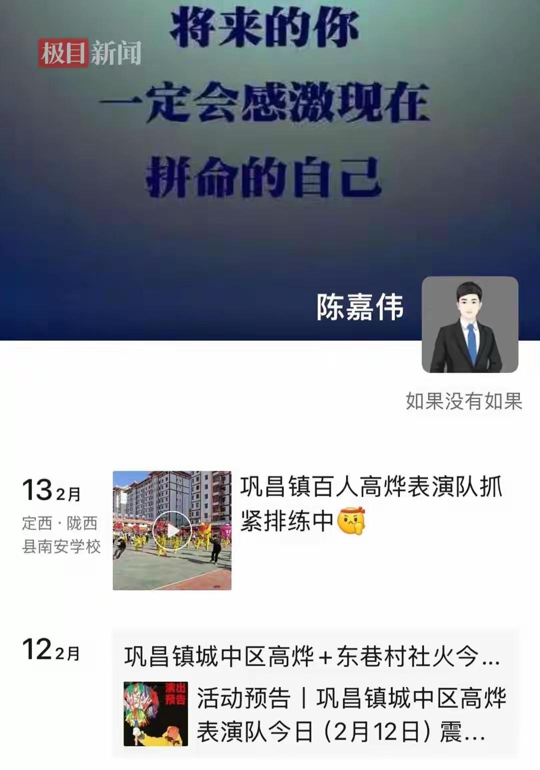 2月14日,36岁的陈嘉伟突然晕倒在工作岗位上,经紧急送医救治,仍于2月16日(除夕)因脑部出血,经全力抢救无效不幸离世。 36岁的陈嘉伟,开会晕倒,除夕因脑出血离世。 一个年轻的生命,正值盛年,却猝不及防的方式离开了。 他刚刚调任巩昌镇仅仅十几天的时间。 这十几天的时间,他都在工作状态中。 他的同事说:事发的时候正在开会,陈嘉伟的状态就不好,双眼朦胧,精神状态极差,这样子,他还和同事们说,是前一晚上一夜没休息。 上一秒还和同事在说话,下一秒就猝然倒下了,还把同事们吓一大跳。 陈嘉伟36岁,和妻子结婚十几年,都是恩爱有加,夫唱妇随。 他们家有三个孩子,大的十岁出头,小的还在学走路。 谁也不想到,在我们都在欢天喜地过大年的时候,他倒在了工作岗位上,没有醒来。 他想陪着孩子们慢慢长大,他想陪着父母慢慢变老,可是,他食言了。 工作中,他恪守职守,有担当。 对家人,他温柔一点,很孝顺。 可是,唯独忘了爱自己,善待自己。 大家都知道,基层工作不容易,事无巨细。 但在怎样,也要保护好自己的身体。 只有健康的身体,才能把工作做好,把家人陪好。 [祈祷][祈祷]愿陈嘉伟一路走好。 更愿活着的我们,再忙再累,都要吃好喝好睡好。 只有身体好了,我们才能把工作做好,才能把家人照顾好。