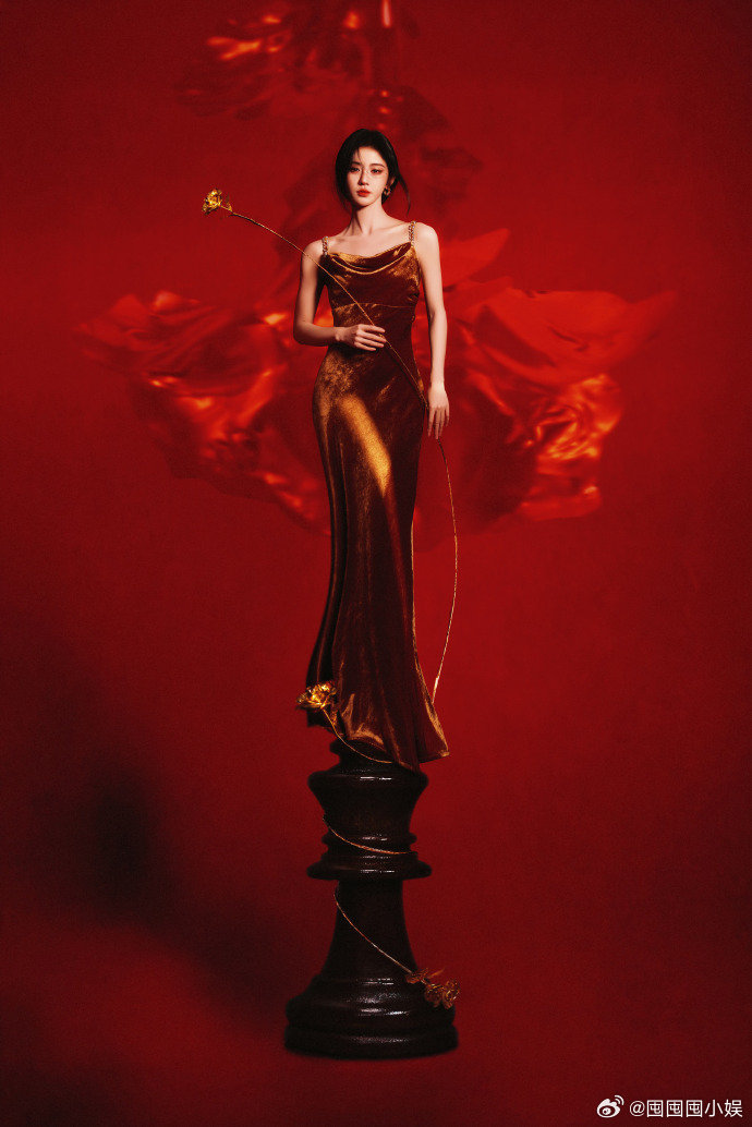 鞠婧祎丝绒吊带鱼尾裙鞠婧祎元宵节大片来了,又飒又美。鞠婧祎鎏金丝绒长裙