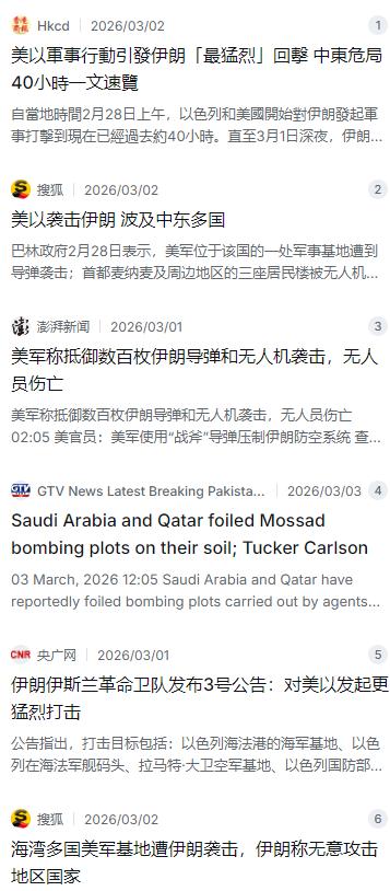 美以损失惨重,局势完全超出他们预期,没料到伊朗准备这么充分,没想到伊朗反击这么猛烈,局势正在朝着美国最害怕的方向演进,美以大麻烦或开始。 麻烦看官老爷们右上角点击一下“关注”,既方便您进行讨论和分享,又能给您带来不一样的参与感,感谢您的支持! 自2月28日美以联合对伊朗发动军事打击以来,中东局势的演变速度已经超出了所有人的预期。原本外界以为这又会是一场"降维打击",伊朗只能被动挨打,就像过去几次冲突那样忍气吞声。但现实却给了美国和以色列一记响亮的耳光。伊朗这次的反击不仅来得快,而且下手非常狠,完全打破了常规战局的剧本,直接让五角大楼和白宫陷入了战略被动 。 伊朗这次摆明了是动真格的,直接启动了代号"真实承诺4"的大规模军事行动。从2月28日晚上开始,伊朗伊斯兰革命卫队就展开了多轮次、高密度的导弹和无人机攻击。最让美军头疼的是,伊朗的打击目标不仅仅是以色列本土,更是直接把枪口对准了美军在中东的多个军事基地。巴林的麦纳麦海军基地,也就是美国第五舰队的司令部,遭到了猛烈的导弹袭击,现场浓烟滚滚,基地内的基础设施损坏严重 。卡塔尔的乌代德空军基地也没能幸免,这套部署在卡塔尔的远程雷达系统被伊朗的导弹直接命中,导致瘫痪 。 说实话,美以联军这次的损失确实有点惨。虽然美国和以色列的铁穹系统以及爱国者防空系统拼了命地拦截,官方通报也说拦截了大部分来袭目标,但总有漏网之鱼。特别是那些突破防线的导弹,造成的破坏是实打实的。五角大楼官员后来也承认,位于巴林的第五舰队的一个空仓库和一座雷达站确实被伊朗导弹击中了 。更让美军感到后怕的是,伊朗这次还动用了高超音速导弹,这种导弹飞得太快,轨迹还飘忽不定,以色列的防空系统哪怕发射了十几枚拦截弹,也只能眼睁睁看着它精准命中目标,这种突防能力彻底打破了地区内的军事技术平衡 。 最让美国感到震惊和措手不及的,是伊朗这次反击的范围和烈度。战火不再局限于伊朗和以色列之间,而是迅速蔓延到了整个中东地区。阿联酋的迪拜国际机场和阿布扎比国际机场都遭到了导弹碎片的袭击,导致机场受损;迪拜的杰贝阿里港,那个停靠着美军军舰的港口,也因为拦截弹碎片起火 。科威特、伊拉克境内也频频传出爆炸声。伊朗最高国家安全委员会秘书拉里贾尼直接用阿拉伯语向周边国家喊话,意思很明确:我们不想打你们,但如果你们的土地被美军用来攻击我们,那这些基地就是我们的合法打击目标,不管它位于哪个国家 。这番话直接把美国架在火上烤,让那些 hosting 美军基地的海湾国家进退两难。 美国现在的心情估计是拔凉拔凉的。别看它表面上还在嘴硬,说"林肯"号航母没被击中,说美军伤亡极小,但实际上的战略困局已经摆在眼前 。美国国内的经济状况本来就一团糟,35万亿美元的国债压得喘不过气,社会撕裂严重,这时候如果被拖进中东这个大泥潭,绝对是致命的。白宫最害怕的事情正在发生:局势正在失控,从一场可以控制的局部冲突,滑向无法预测的地区大战 。 再看看以色列,这次也是被打得够呛。特拉维夫、海法、贝特谢梅什等多个城市都拉响了防空警报。伊朗公布的视频画面里,导弹准确击中了以军总参谋部大楼,火光冲天。以色列卫生部统计,有几百号人受伤被送到医院,特拉维夫当地至少有40栋建筑被炸坏,两百多号人无家可归 。虽然以色列宣称摧毁了伊朗的多个指挥中心,打死了不少指挥官,但伊朗的反击一波接一波,打到第九轮了还没停手,这种消耗战以色列拖得起吗 ? 更让美以头疼的是,整个中东地区的"火药味"变了。以往美国打个伊朗,周边那些阿拉伯国家顶多是嘴上谴责几句,背后还是跟美国称兄道弟。但这次不一样了。虽然沙特等国表面谴责伊朗侵犯主权,但民间甚至部分武装力量对以色列的厌恶情绪高涨 。黎巴嫩真主党已经明确表态支持伊朗,也门的胡塞武装也在虎视眈眈,随时可能加入战局 。可以说,伊朗通过这些代理人武装,已经对以色列形成了牵制,让以色列陷入多线作战的困境。 现在的中东局势,正在朝着美国最担心的方向狂奔。伊朗不仅展示了其导弹库存的厚度和打击精度,更重要的是展现了那种"不惜一战"的决心。美国虽然增派了兵力,但在这种遍地开花的袭击面前,显得力不从心。接下来最关键的看点,就是霍尔木兹海峡会不会被长期封锁,一旦这条全球能源大动脉被掐断,国际油价飙升,那引发的将是全球性的经济震荡,到那时美国想不出手都难了 。这场博弈,美以显然低估了伊朗的准备,也高估了自己控场的能力,大麻烦,或许才刚刚开始。