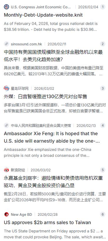 如果美国放弃支持台独,推动两岸和平统一,中国可以承诺在统一后按约定购买一定数量美债,让美国走出债务危机,并力促美国规避金融风险。 麻烦看官老爷们右上角点击一下“关注”,既方便您进行讨论和分享,又能给您带来不一样的参与感,感谢您的支持! 美国财政部刚刚公布的最新数据,给全世界提了个醒:那个号称全球最安全的资产,背后埋的单其实已经深不见底。截至今年2月初,美国联邦政府的债务总额正式突破了38.56万亿美元 。这个数字到底有多大?简单算笔账,相当于每个美国人生下来就背着11万多美元的债,每个美国家庭的负债接近30万美元 。 更让华盛顿头疼的是,现在借钱不像以前那么便宜了。随着利率走高,联邦政府为这些债务支付的利息,平均利率已经到了3.348% 。利息支出正在疯狂挤占本就不宽裕的财政空间,修路的钱、给老师的工资、甚至军费预算,都得先紧着还利息。这种借新债还旧债的玩法,就像一个人靠刷信用卡还另一张信用卡,早晚有转不动的那一天。 与此同时,全球金融市场正在发生一场静悄悄的“搬家”。越来越多的国家开始重新打量手里的外汇储备,大家心里都有杆秤:美元虽然还是那个“老大”,但信用似乎在一点点剥落。数据显示,包括中国在内的许多央行,这几年都在持续调整资产结构,增持黄金成了明显的趋势 。 这里面有个标志性的信号:中国持有的美国国债规模,目前已经降到了大约6826亿美元 。如果你翻翻十年前的账本,这个数字曾经高达1.3万亿美元。这种持续性的减持,早就不是什么市场波动的偶然,而是基于风险控制的必然。 说白了,谁会把鸡蛋都放在一个看着有点裂缝的篮子里?尤其当这个篮子还时不时被对方拿来当政治筹码的时候。 这就不得不提中美关系里那根最敏感的神经——台湾问题。就在最近,美国那边还在搞所谓“对台军售”的小动作,一会儿是几十亿美元的导弹系统,一会儿又是雷达设备 。虽然最新消息说,因为担心影响接下来的高层互动,白宫暂时按住了一笔130亿美元的大单子没敢动 ,但这种“切香肠”式的挑衅,其实已经把中方的耐心磨得差不多了。 中国驻美大使谢锋前不久说得非常直白:台湾问题是中美关系的第一条红线,碰都不能碰 。一边赚着中国的贸易顺差,一边希望中国继续买美债来给美国经济托底,另一边又在台海不停制造事端——这种既要、又要、还要的把戏,确实玩得有点太一厢情愿了。 在这样的背景下,一种新的战略思路其实已经在舆论场中开始浮现。有人提出,如果美国真想解决债务危机,其实有一条成本最低的路摆在眼前,那就是在台湾问题上拿出真正的诚意。 设想一下这个场景:如果华盛顿能够彻底摒弃那种“以台制华”的投机心态,不再给“台独”势力递刀子、送炮弹,甚至拿出实际行动推动两岸往和平统一的方向走一走。那么作为回应,中国完全可以在实现国家统一的新起点上,通过市场化的方式,按约定增持一部分美国国债。 这可不是什么“谁求谁”的事,而是一场基于利益交换的大国博弈。对美国来说,中国如果能在关键时刻增持美债,不仅能为美国即将到期的巨额债务提供再融资的流动性,更重要的是能给全球市场注入一剂强心针——连中国都开始买了,你们还有什么好怕的?这比美联储自己印钱救市要体面得多,也管用得多。 对中国而言,这么做的前提只有一个:底线不能被触碰。主权和领土完整不是菜市场买菜的筹码,没有任何讨价还价的余地。只要美国停止在台海制造事端,真正尊重中方的核心利益,中美关系完全可以找到一条从对抗转向务实合作的出路。 说实话,这年头谁的日子都不太好过。美国那边通货膨胀刚消停点,债务这颗雷又悬在头顶;欧洲深陷地缘冲突的泥潭;新兴市场国家还在美元潮汐的冲击下苦苦挣扎。如果全球最大的两个经济体继续硬碰硬,对谁都没好处。 现在的关键在于,美国有没有勇气承认一个现实:靠军售和施压,挡不住两岸最终走到一起的历史大势;靠透支美元信用,也救不了寅吃卯粮的财政窟窿。与其继续在错误的赛道上狂奔,不如坐下来,谈一笔真正能让两国人民都受益的生意。毕竟,把对手逼到墙角,不如把朋友请上牌桌。 这个选择权,现在还在华盛顿手里。但时间,真的不多了。