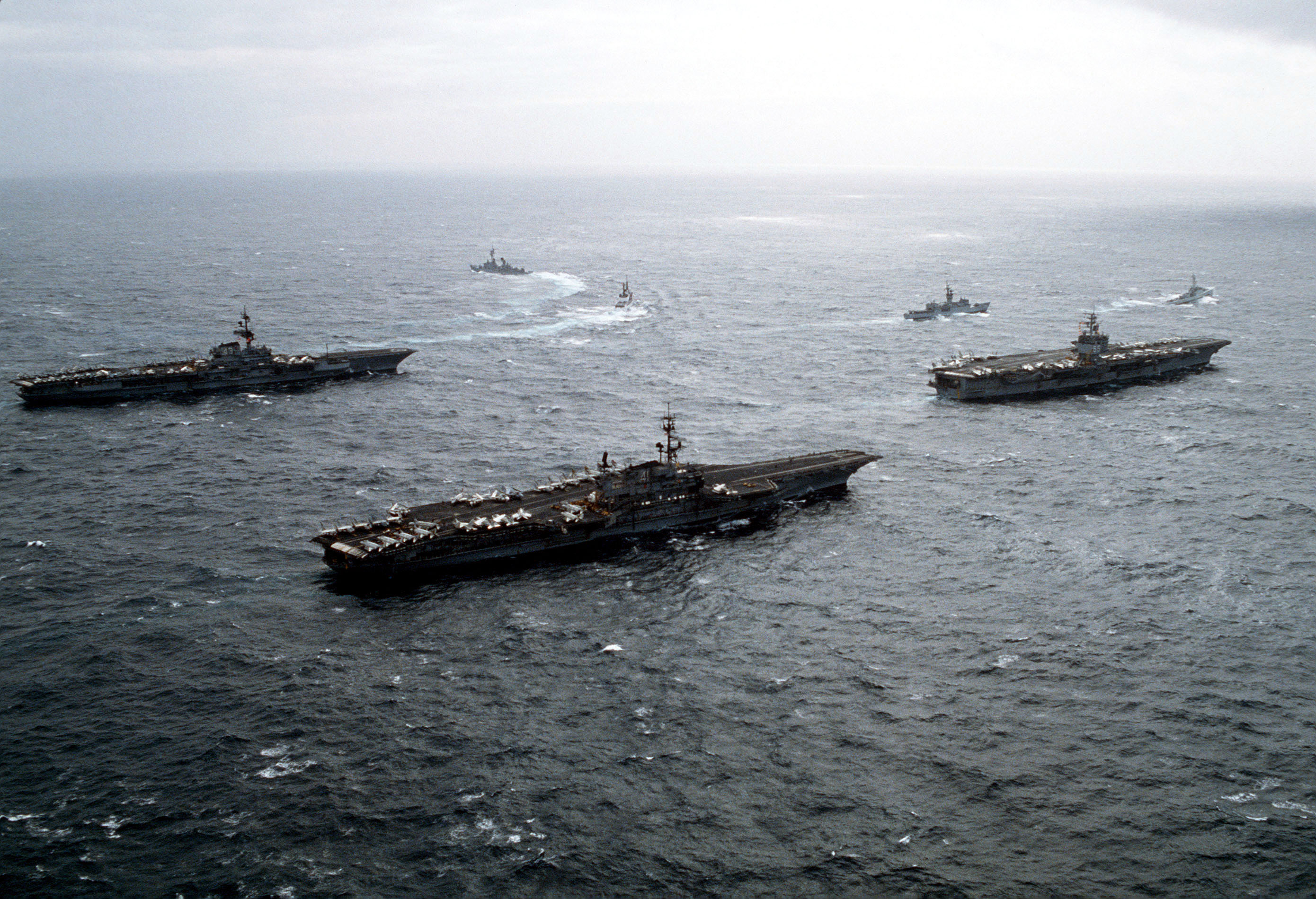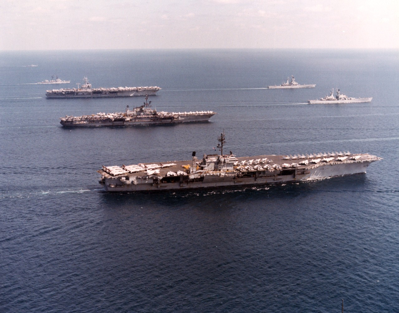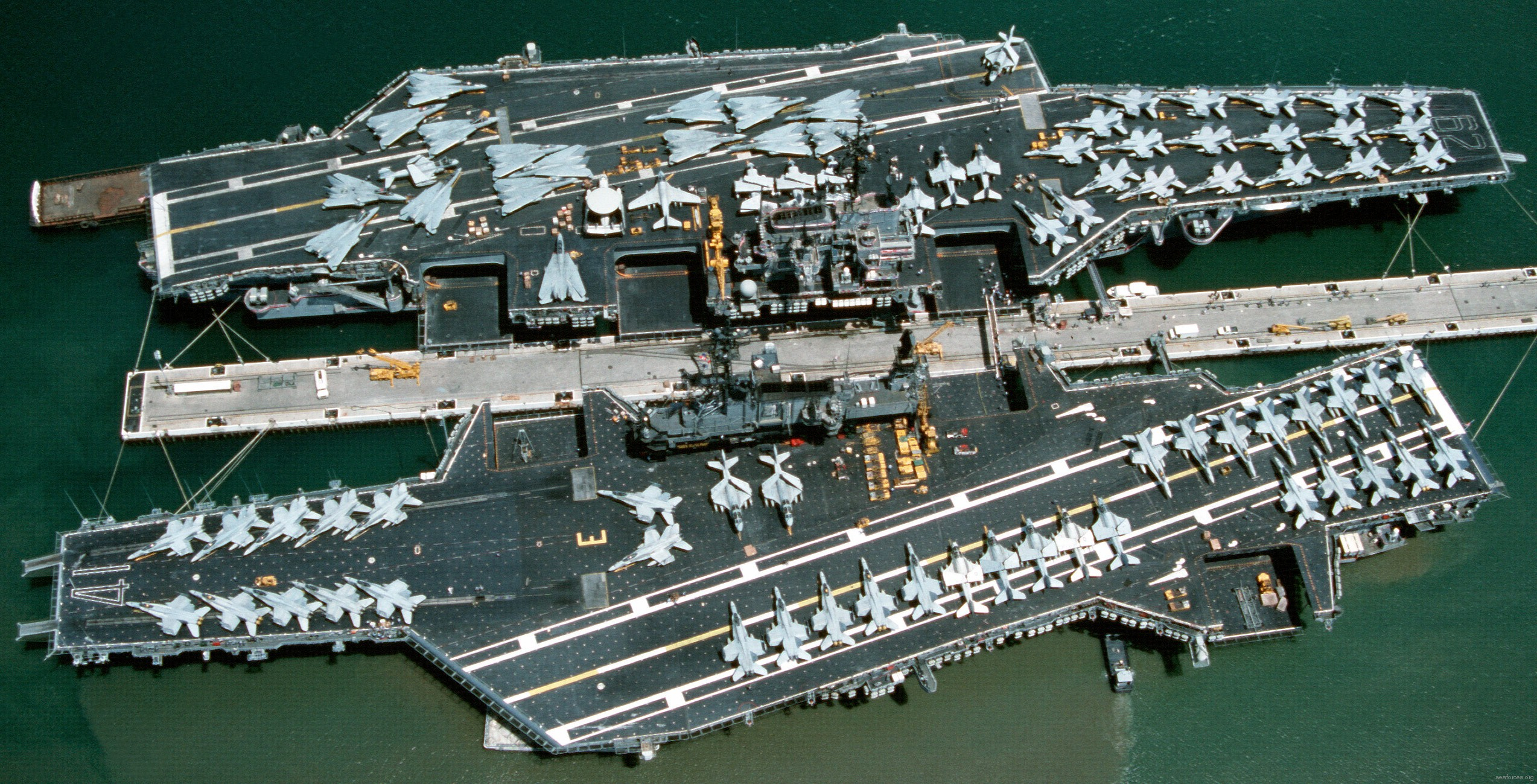 🔻图3和图4均摄于上世纪80年代初,此时的USN航母部队堪称 “四世同堂” :二战末期诞生的中途岛级、50年代诞生的福莱斯特级、50-60年代诞生的小鹰级和企业级、60年代末诞生的尼米兹级均在舰队中服役,并在历次大规模军事行动中均有出场