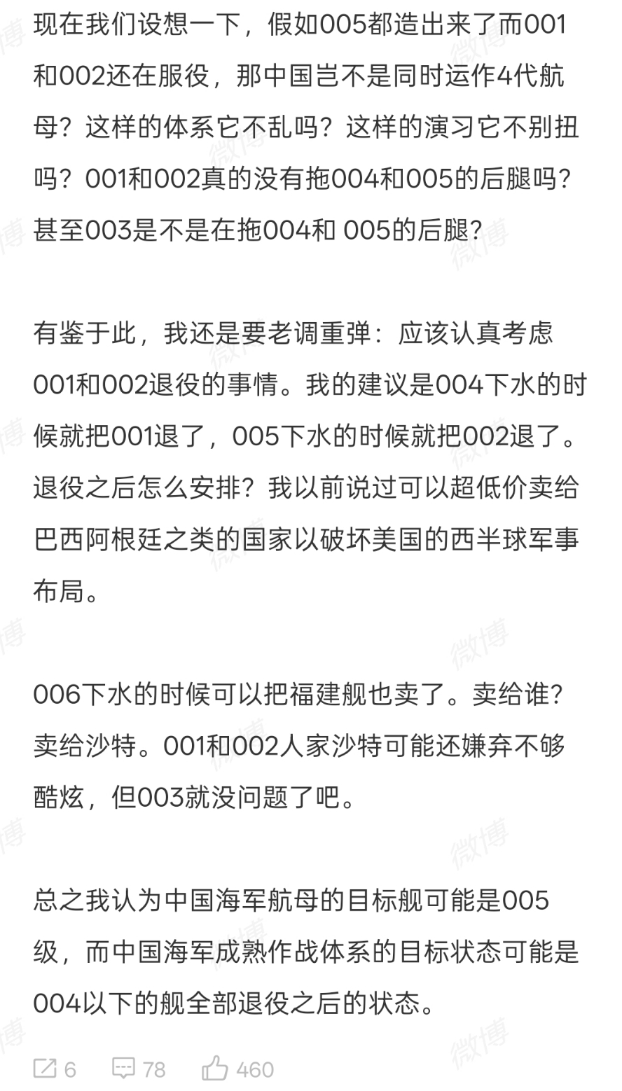 🔻总之,不要颅内强外 (军),不要低估了国内各省在航母退役后接船回家的决心和行动力,不要高估下一代舰战的不兼容性 (真这样搞,项目可能就要完蛋了),更不要觉得会有什么目标舰,做好今后每个数字型号至多有两艘同型舰的心理准备