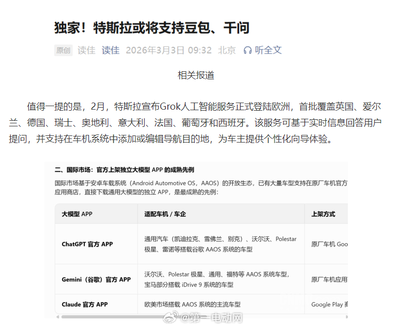 今天又有公众号消息,特斯拉将支持豆包、千问,那就是DS被PASS了?千问负责聊天?特斯拉豆包AI千问