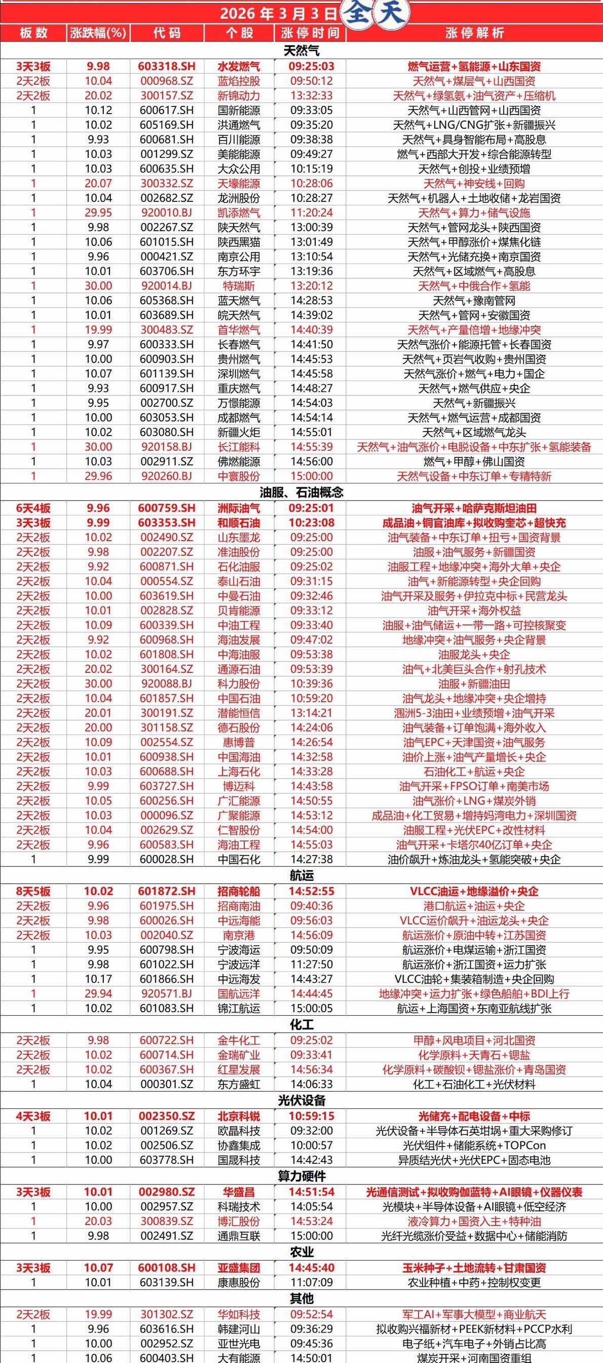 3月3日主力资金偷偷买了什么主力加仓能源与科技股,石油、氢能、航运板块受青睐