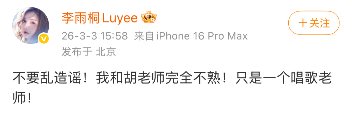 李雨桐和胡彦斌完全不熟李雨桐说和胡老师完全不熟!只是一个唱歌老师!我不行了。。胡