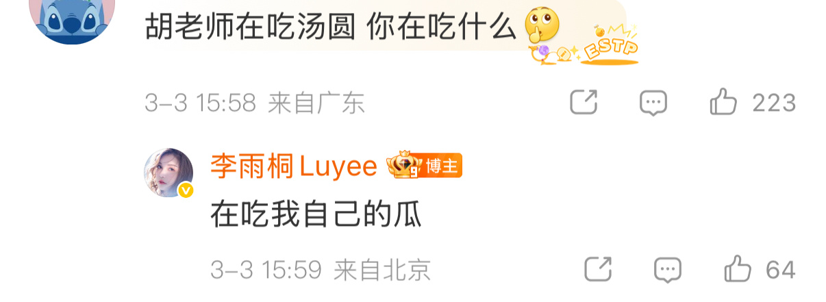 李雨桐和胡彦斌完全不熟李雨桐说和胡老师完全不熟!只是一个唱歌老师!我不行了。。胡彦斌只想吃汤圆。。 放过他吧