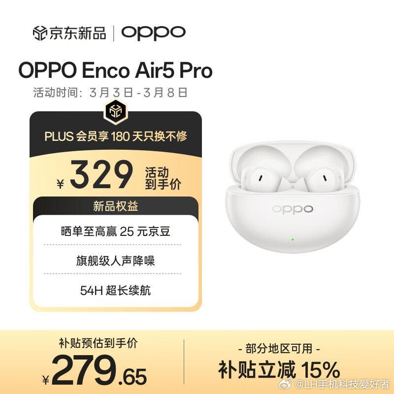 OPPO Enco Air5 Pro:到手价279元。