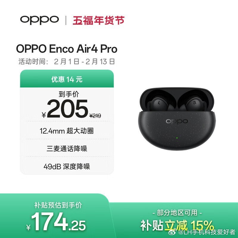 OPPO Enco Air4 Pro:到手价219元。