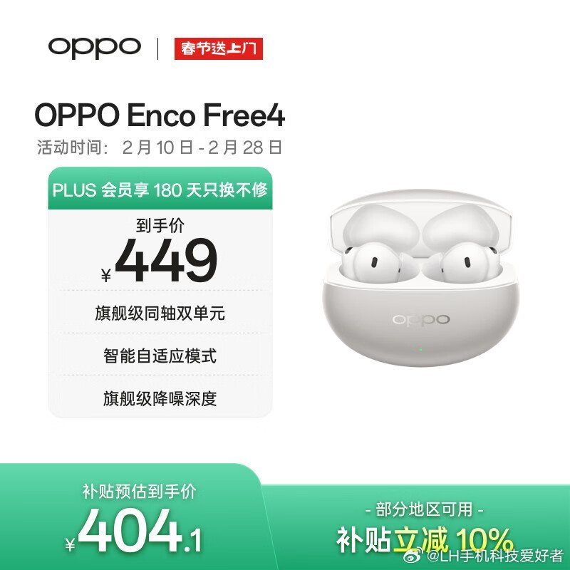 OPPO Enco Free4丹拿版:到手价449元。