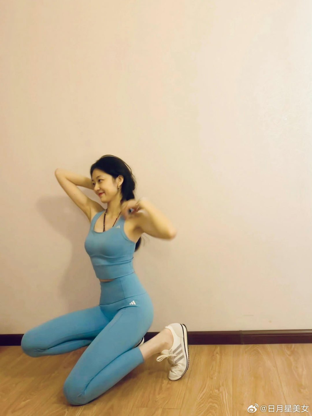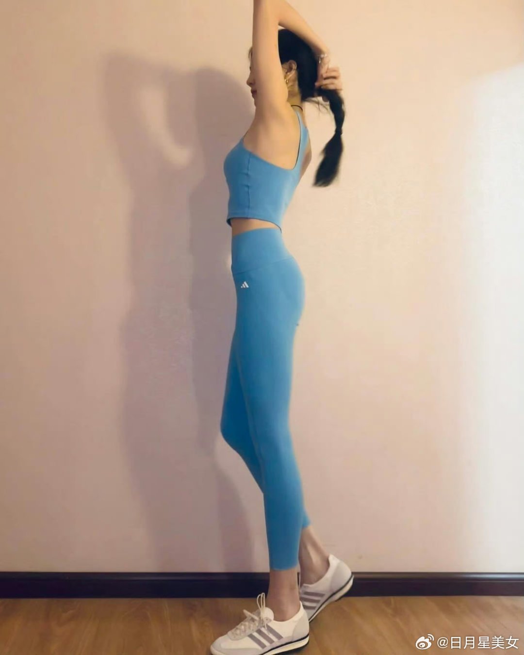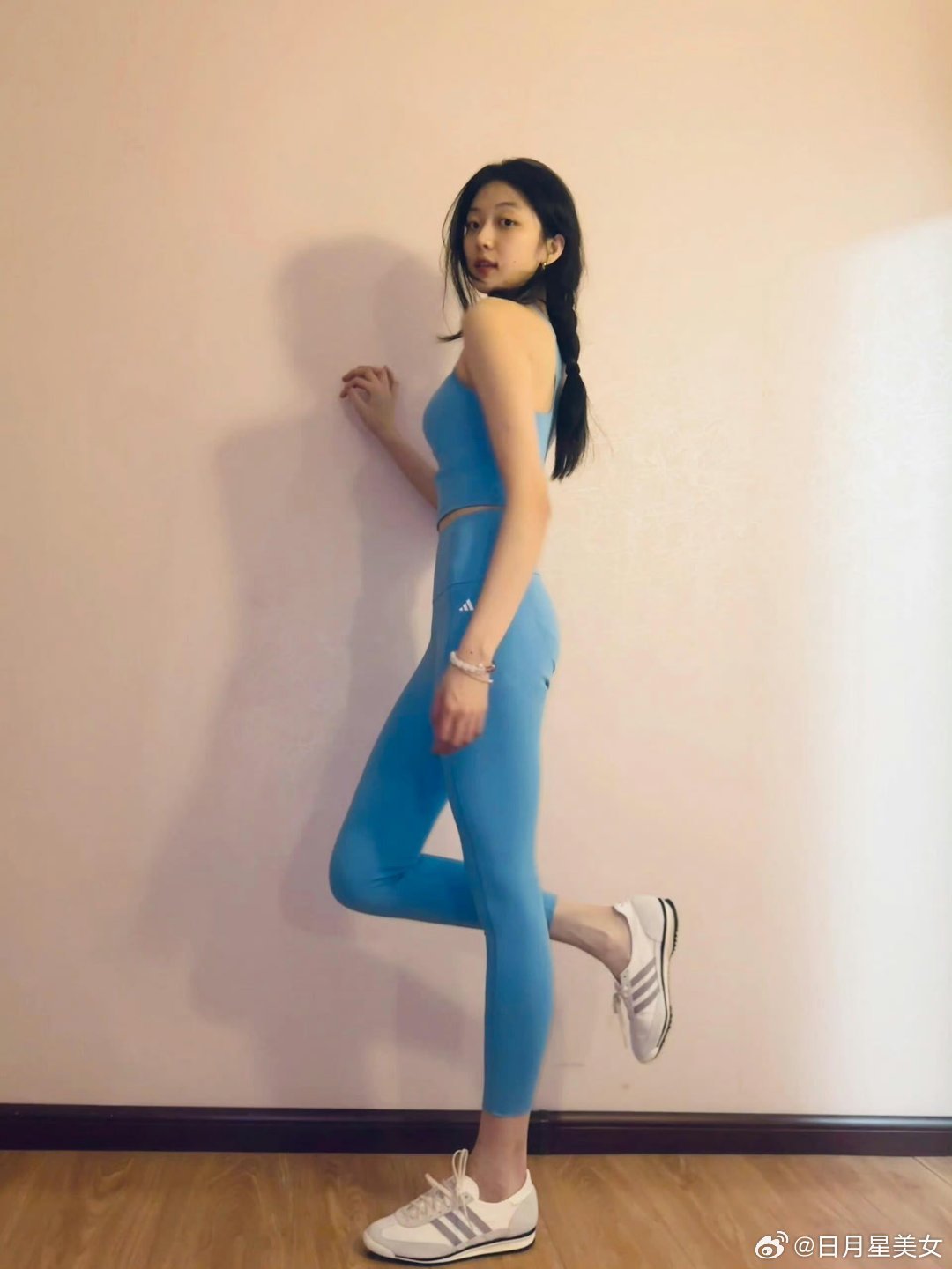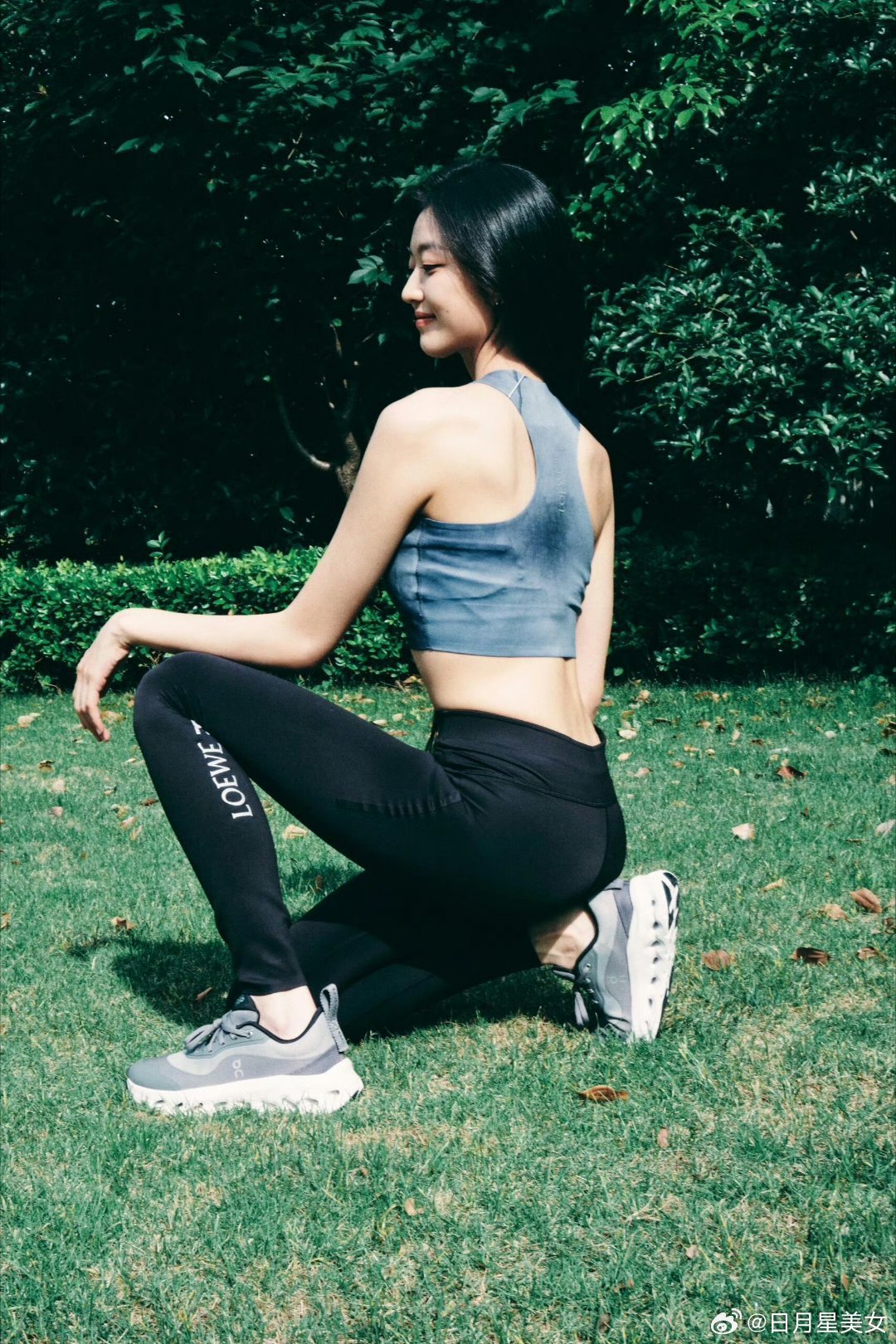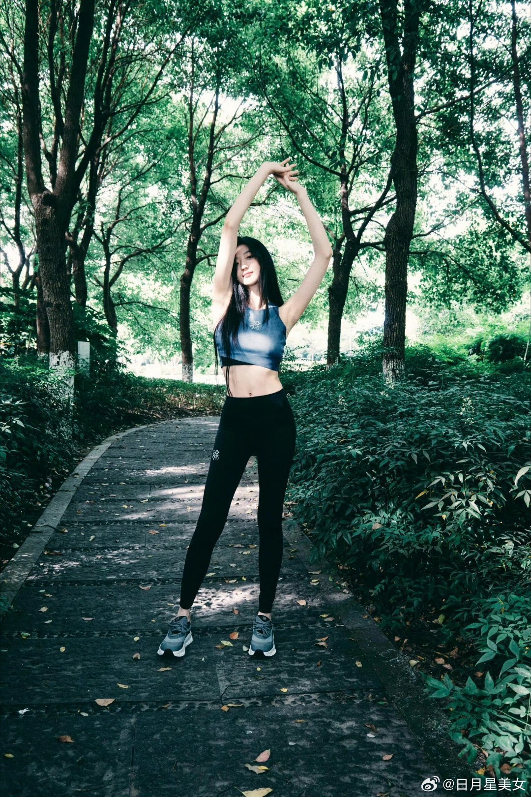孙千瑜伽运动穿搭,大长腿好身材,活力满满。孙千