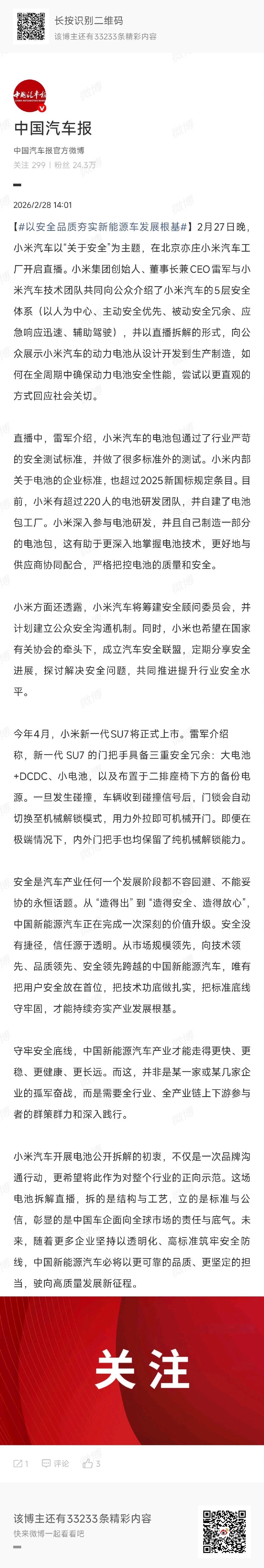 有人说安全没有捷径,信任源于透明。小米汽车一直以来在安全的问题上还是很重视的,像昨天一样关于安全的直播也开了一场又一场,终极目标就是给大家讲清楚小米汽车的安全问题。毕竟在安全这条赛道上,没有尽头,只有极限,而小米,确实在这条路越走越稳。